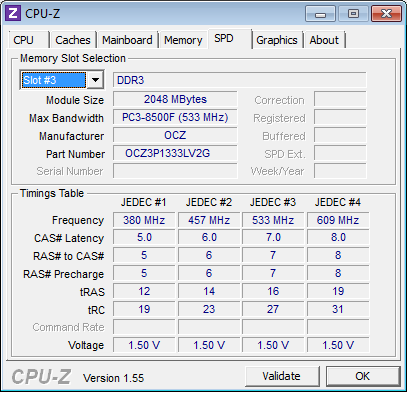2x2048MB OCZ Platinum Series DDR3-1333 CL7 Kit (OCZ3P1333LV4GK)
