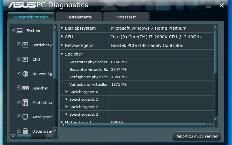 Was wir sehen ist, dass 4,3 GiB Speicher verfügbar sind von insgesamt 8 GiB. Den Rest müssen wir folgern oder dürfen (wieder einmal) raten. Ein 64 Bit Windows ist es offenbar (wir haben ja mehr als 4 GiB freien, physikalischen Speicher), allerdings scheinen diverse Anwendungen zu laufen - das können wir noch begründet vermuten.