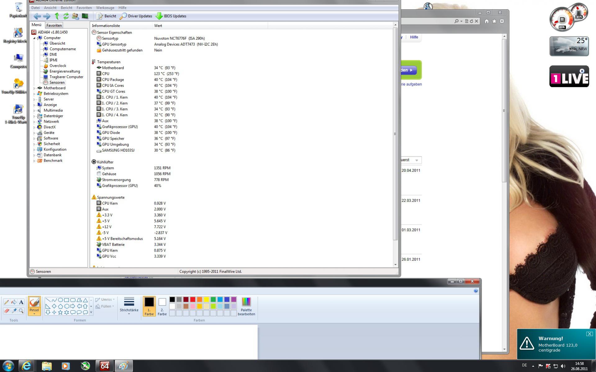 Das ist ein Auslesefehler, den habe ich manchmal auch. Das Mainboard zeigt manchmal statt -123 Grad auch 0 Grad an. Das haengt damit zusammen, dass einige andere Messprogramme im Hintergrund laufen. Die Message kannst du getrost ignorieren.