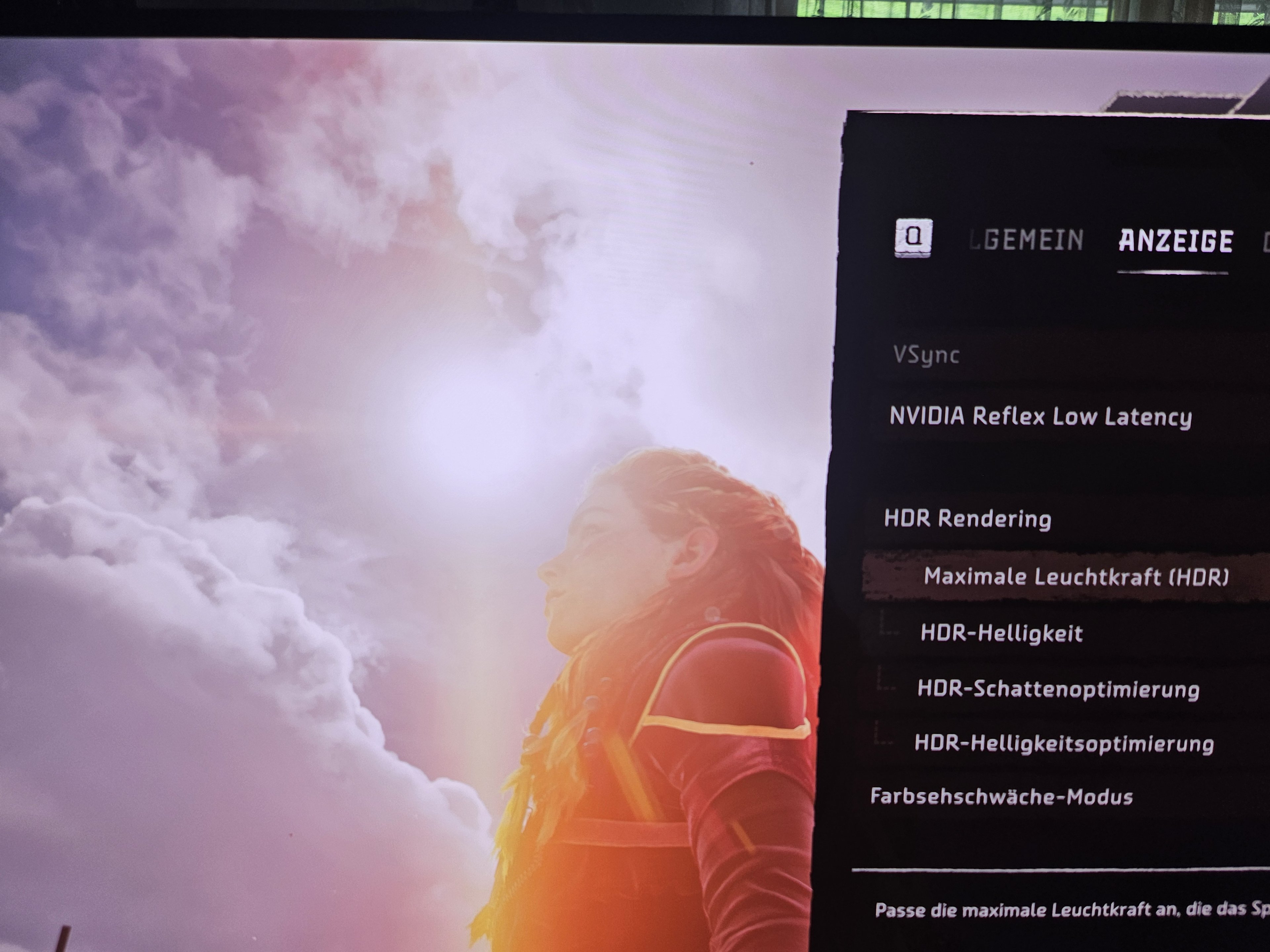 ingame Peak auf 1000 nits eingestellt... die Wolken um die Sonne, und die Sonne selbst sind komplett geclipt. Man sieht ja nichtmal wo die Sonne beginnt und wo die Wolken etc.)