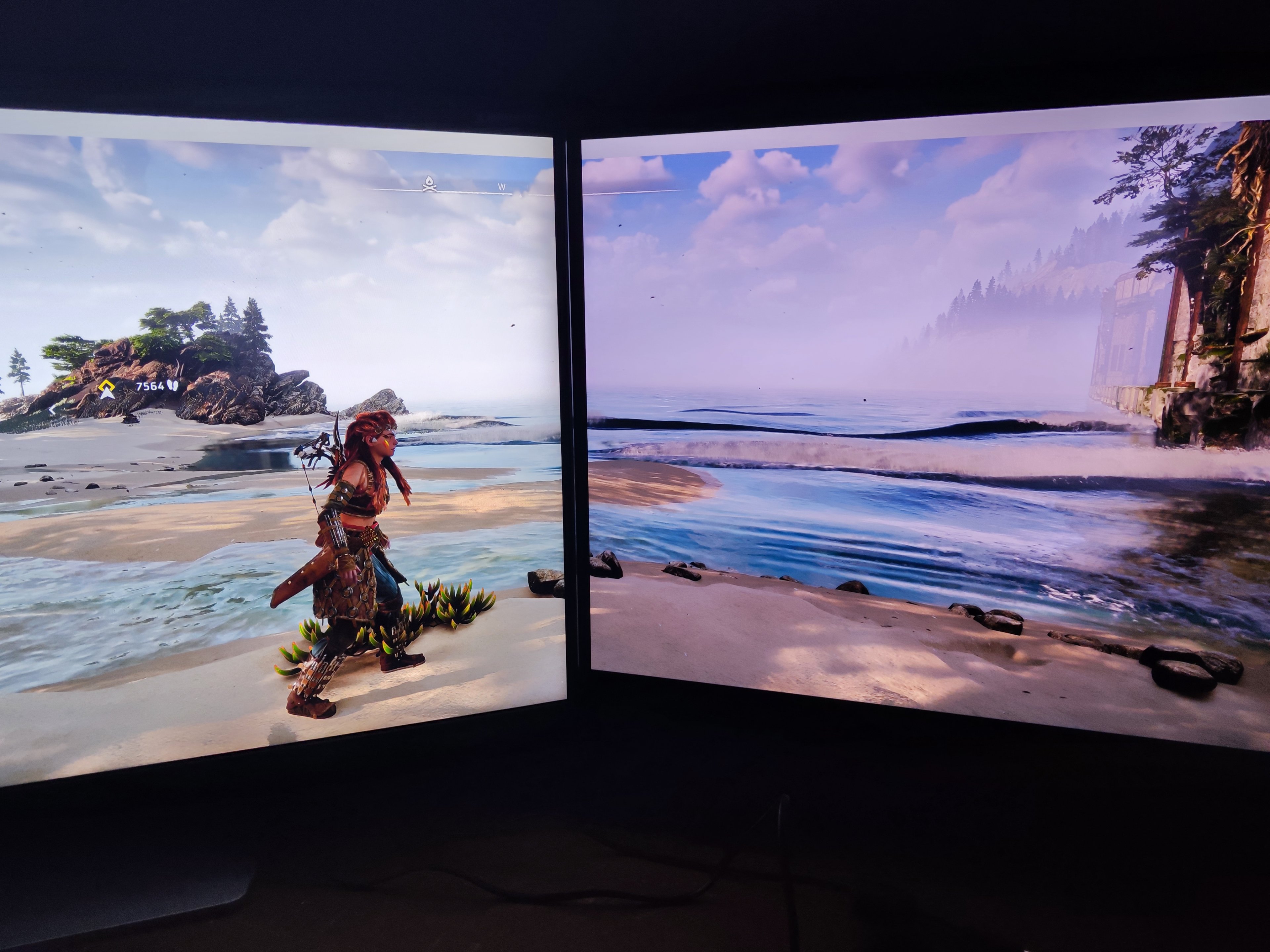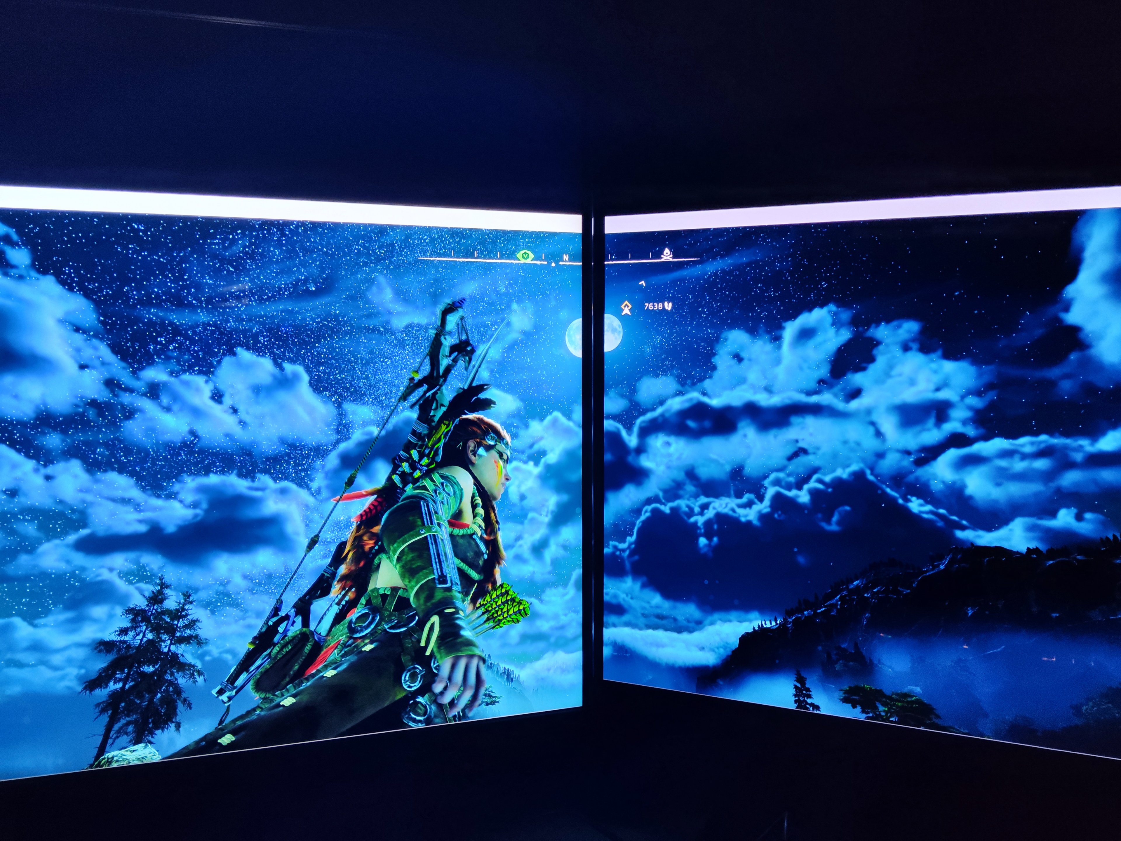 Auf den Fotos wirkt der Qled ausgeblichen und überstrahlt, real ist dem aber nicht so und sticht in beiden szenarien den Oled komplett aus. Man beachte vor allem auch mal den Sternenhimmel, wo es doch immer so heisst das wär nen Qled Problem 😂, und bei den hellen Bildern steht Aloy eigendlich in der Mittagssonne, da kannst alle Qleds, QDoleds komplett in die Tonne Treten. Man beachte die Texturzeichnungen und Farbspiele des Qled, oder die völlig unrealsitischen Kontraste vom Oled, welcher Schatten in der vollen Sonne schlicht viel zu dunkel absaufen lässt. Und wer denkt man könne das mit Anhebung dunkler bereiche angehen, das sind sie im Bildbeispiel bereits bis knapp zum Pixeleinschaltpunkt, denn das geht nur soweit "gut", bis alle Pixel kein "off" mehr haben, also stets bereits Eunkelgrau aufleuchten = Ad'e Schwarzwert). Beide TV's sind übrigens durchkalibriert mit Farbanhebung (ich mags bund 😉)