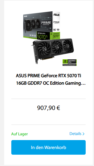 Persönlich will ich mir keine Asus Prime antun, der Kühler scheint auf allen Karten eher lauter zu agieren und trotzdem noch wärmer. Wer da unempfindlicher ist nimmt klar die 5070ti.
