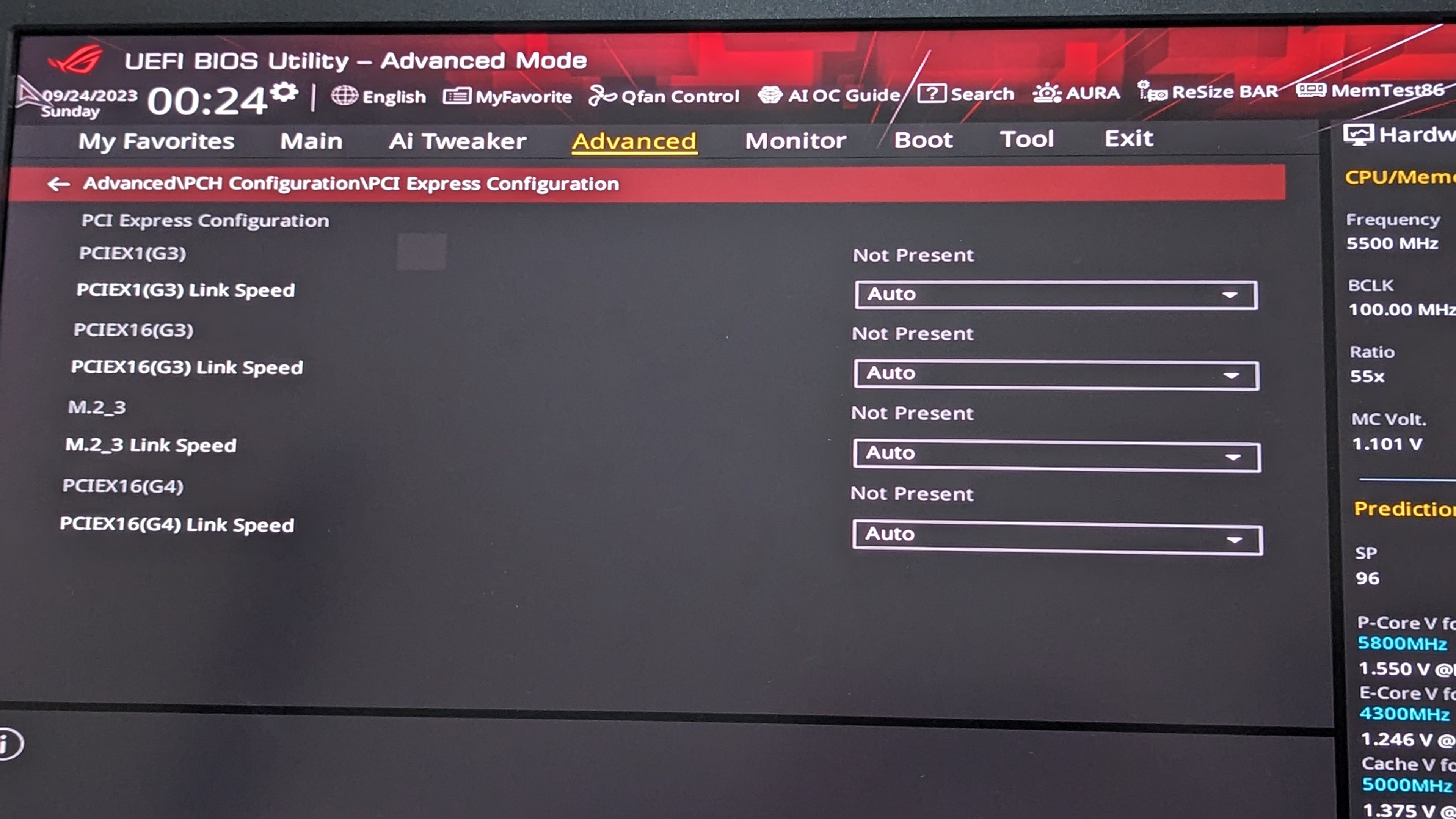 Hallo ich versuche einen Fehler zu beheben und möchte die PCIeGen im Bios ändern, allerdings finde