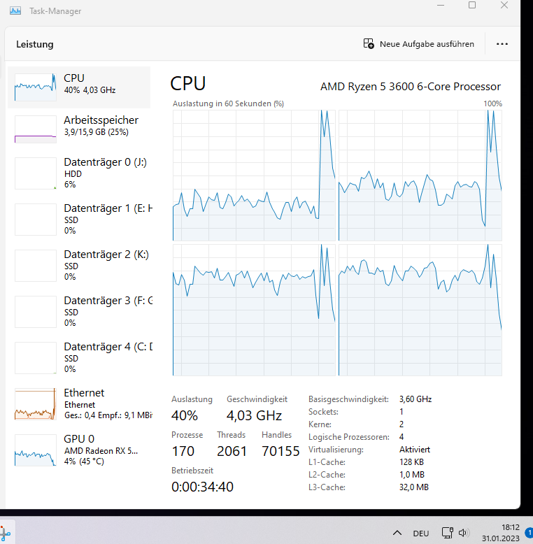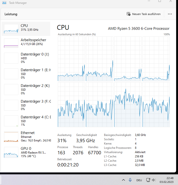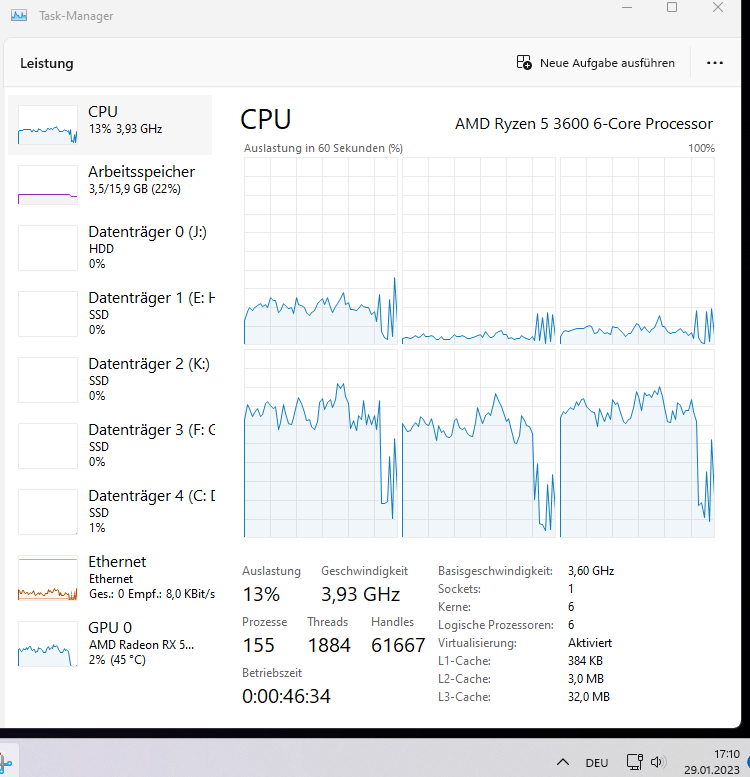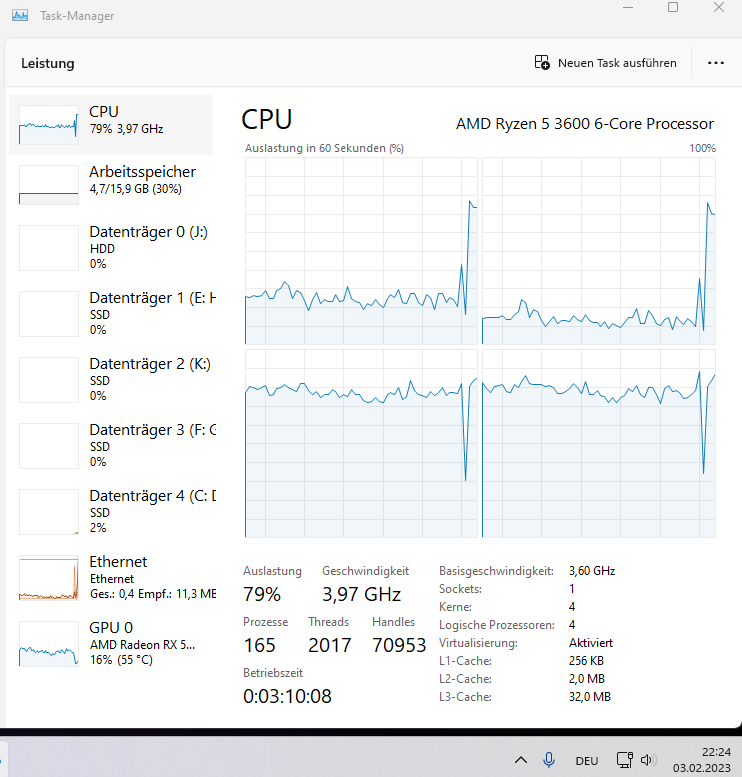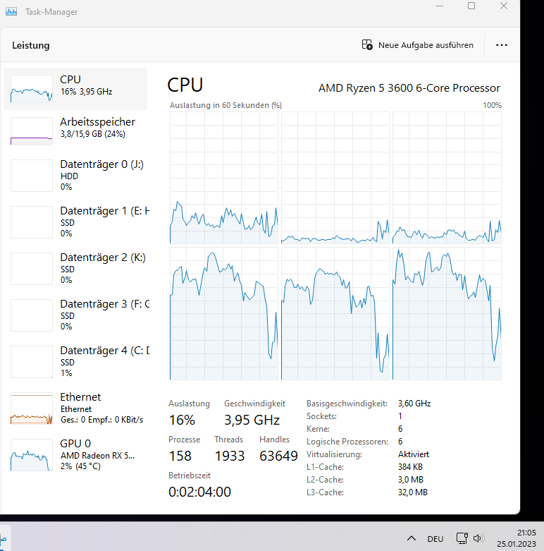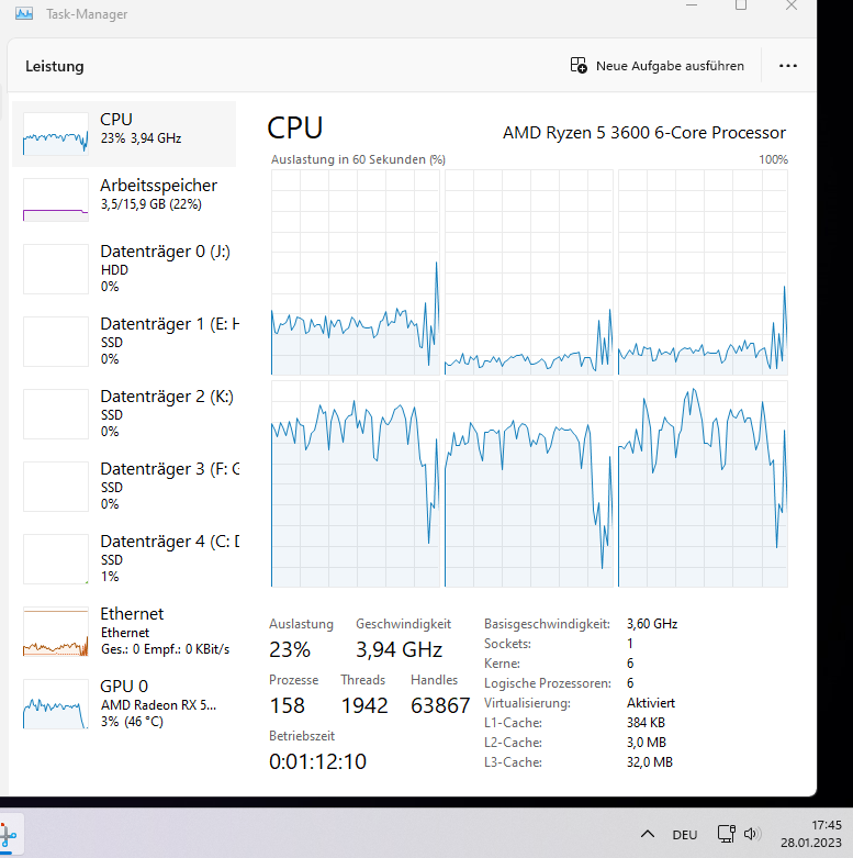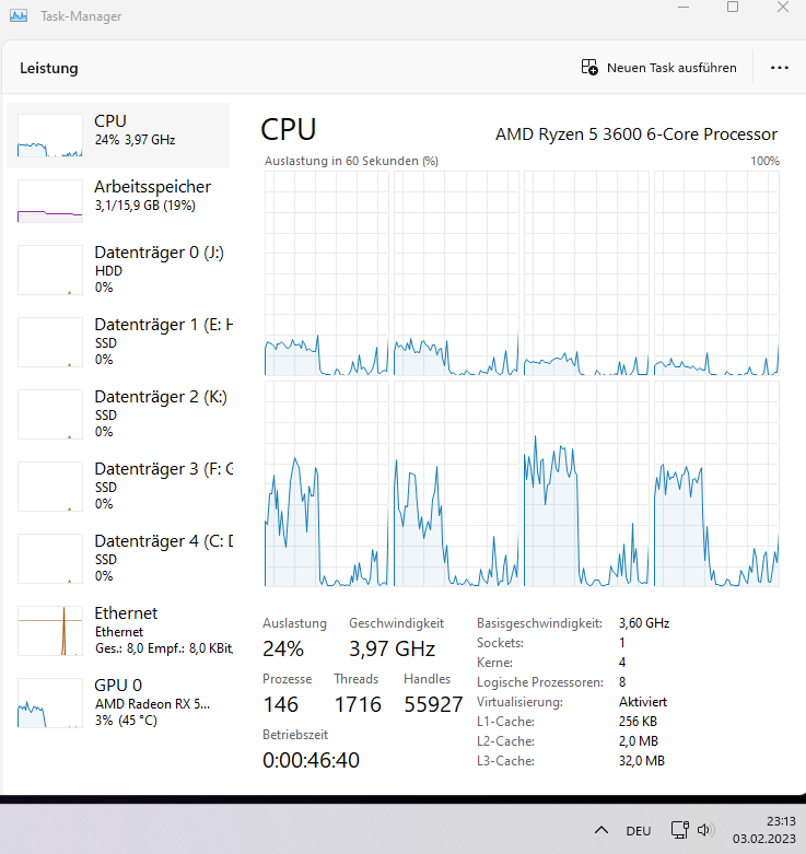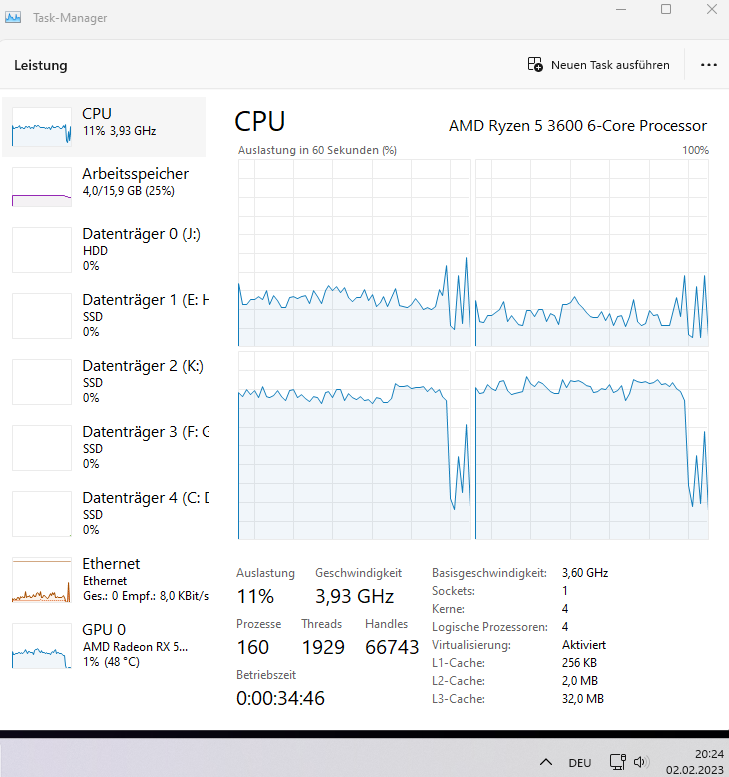 - CPU: Ryzen 5 3600, gekauft 06/2020, momenten mit um 0,15/0,10 Volt (CPU/SoC) niedrigerer Spannung