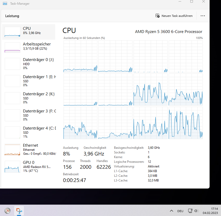 Zeigt der Taskmanager eigentlich immer einen errechneten Mittelwert aus dem Takt aller sechs Kerne an?