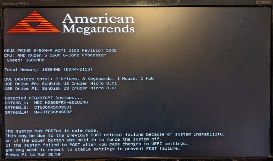 - Mainboard: Asus Prime B450M-A, BIOS 3802