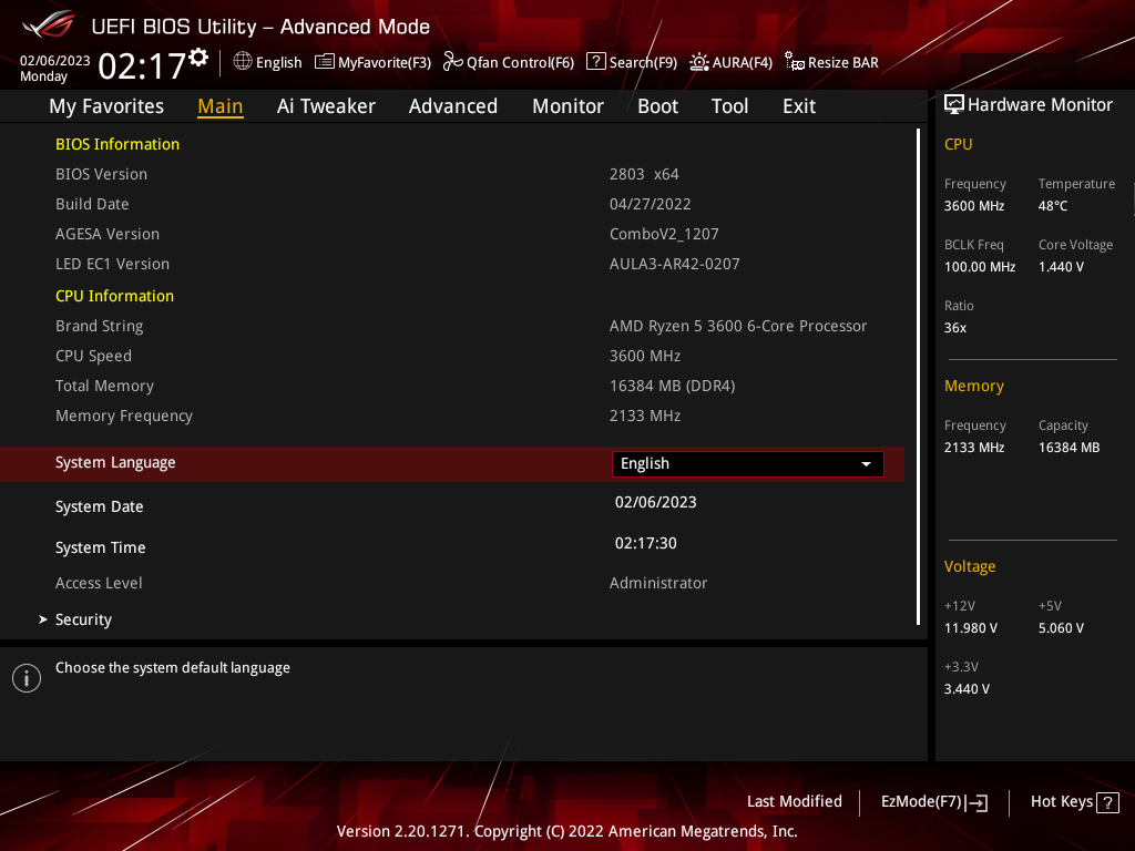 Ich kann nur "Systemsprache" oder "Sicherheit" unter "Main" ansteuern, aber nicht "Systemdatum" und "Systemzeit".