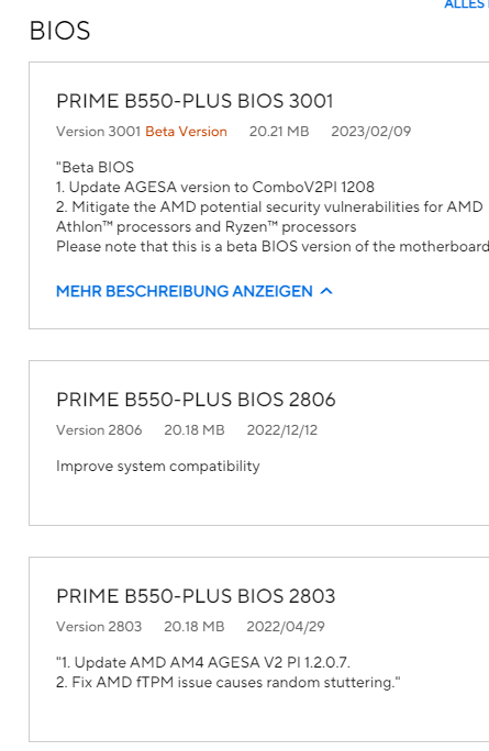 ... Ich habe ein BIOS Update gemacht und es auf die Version 2803 gemacht. Das Update habe ich aus Sicherheitsgründen nicht durch ein USB Stick gemacht sondern von der SSD heraus. Windows ist ebenfalls auf dem neusten Stand und auch alle Treiber( GPU Chipsatz ) habe ich aktualisiert.