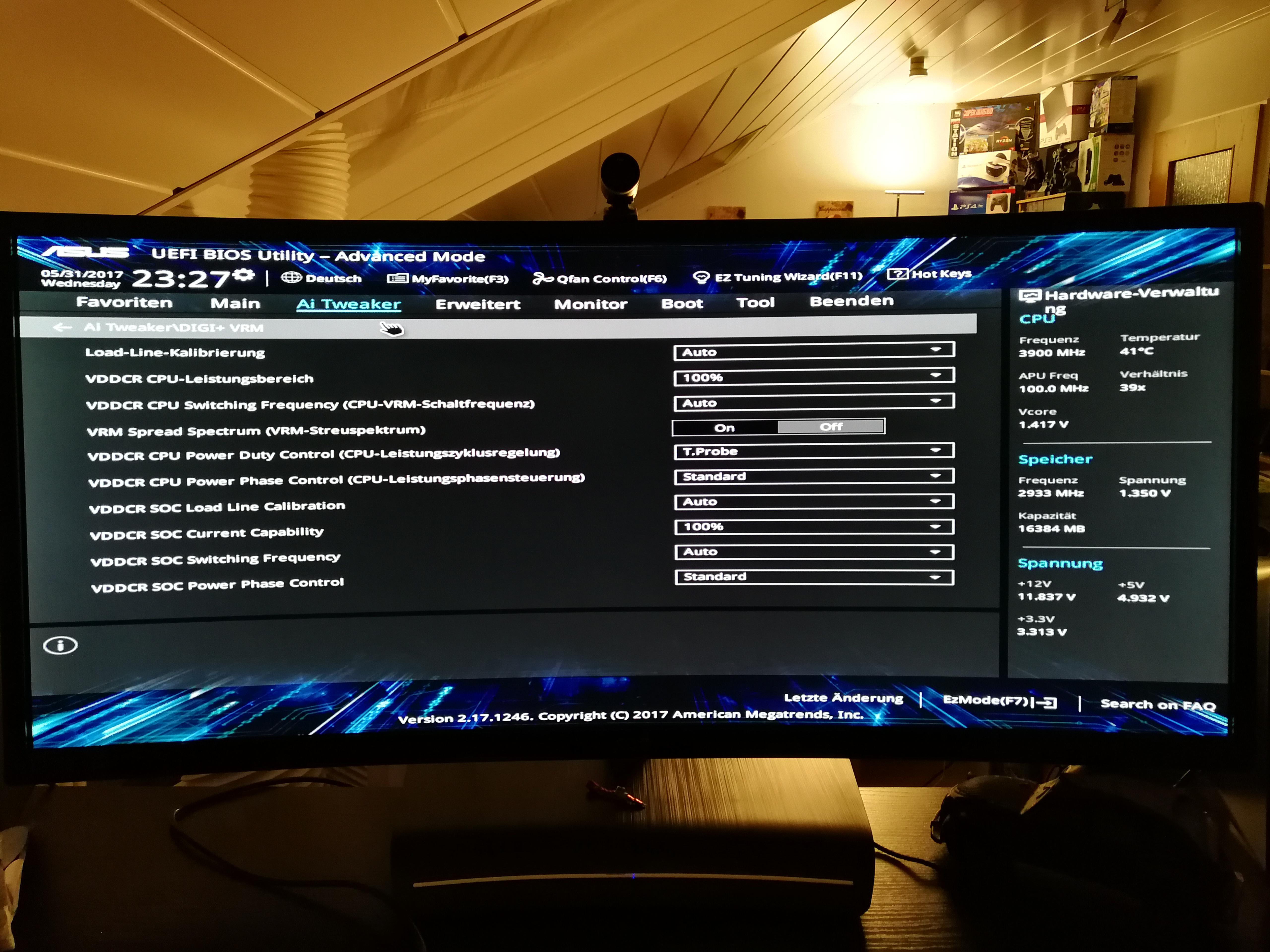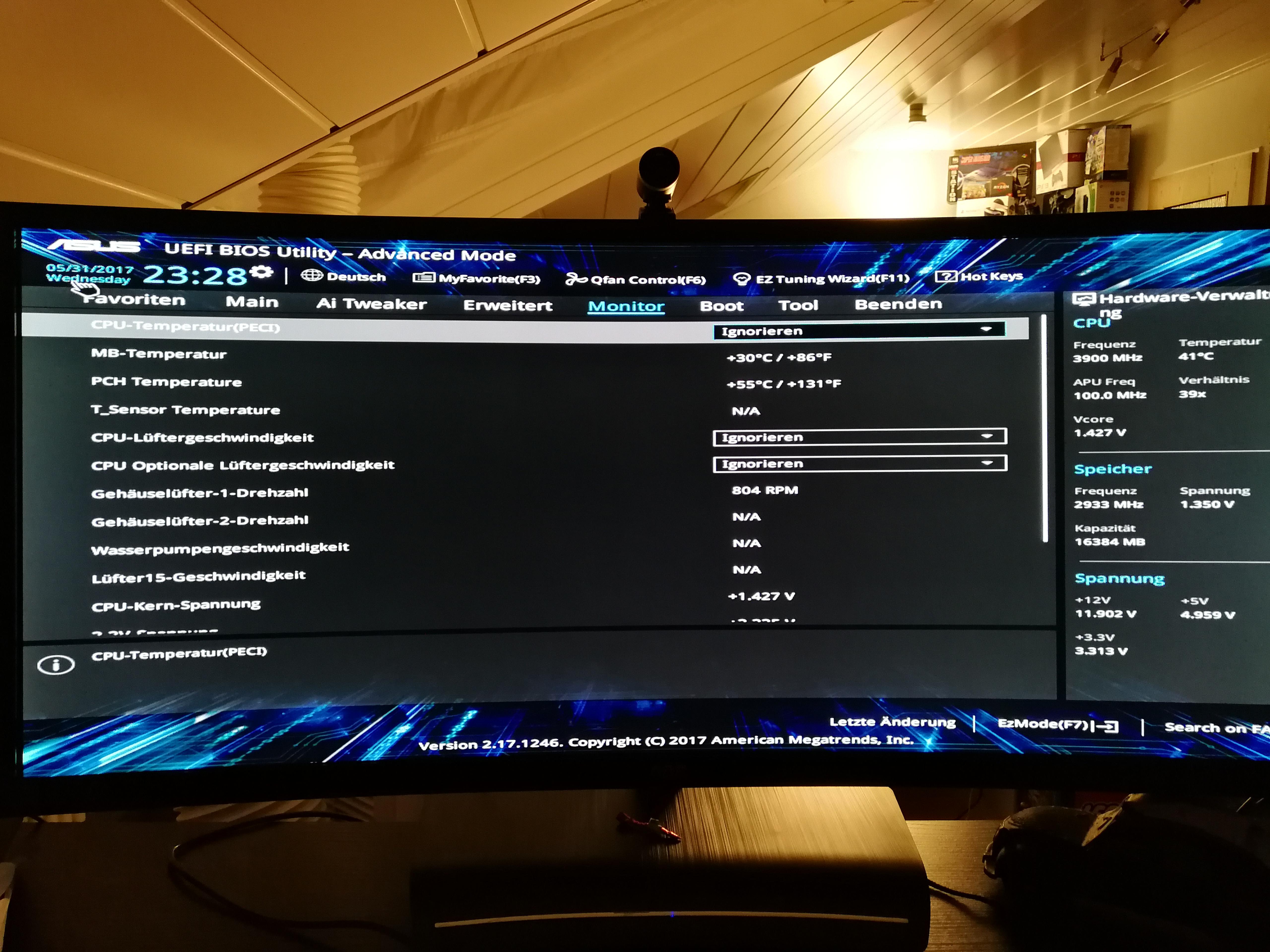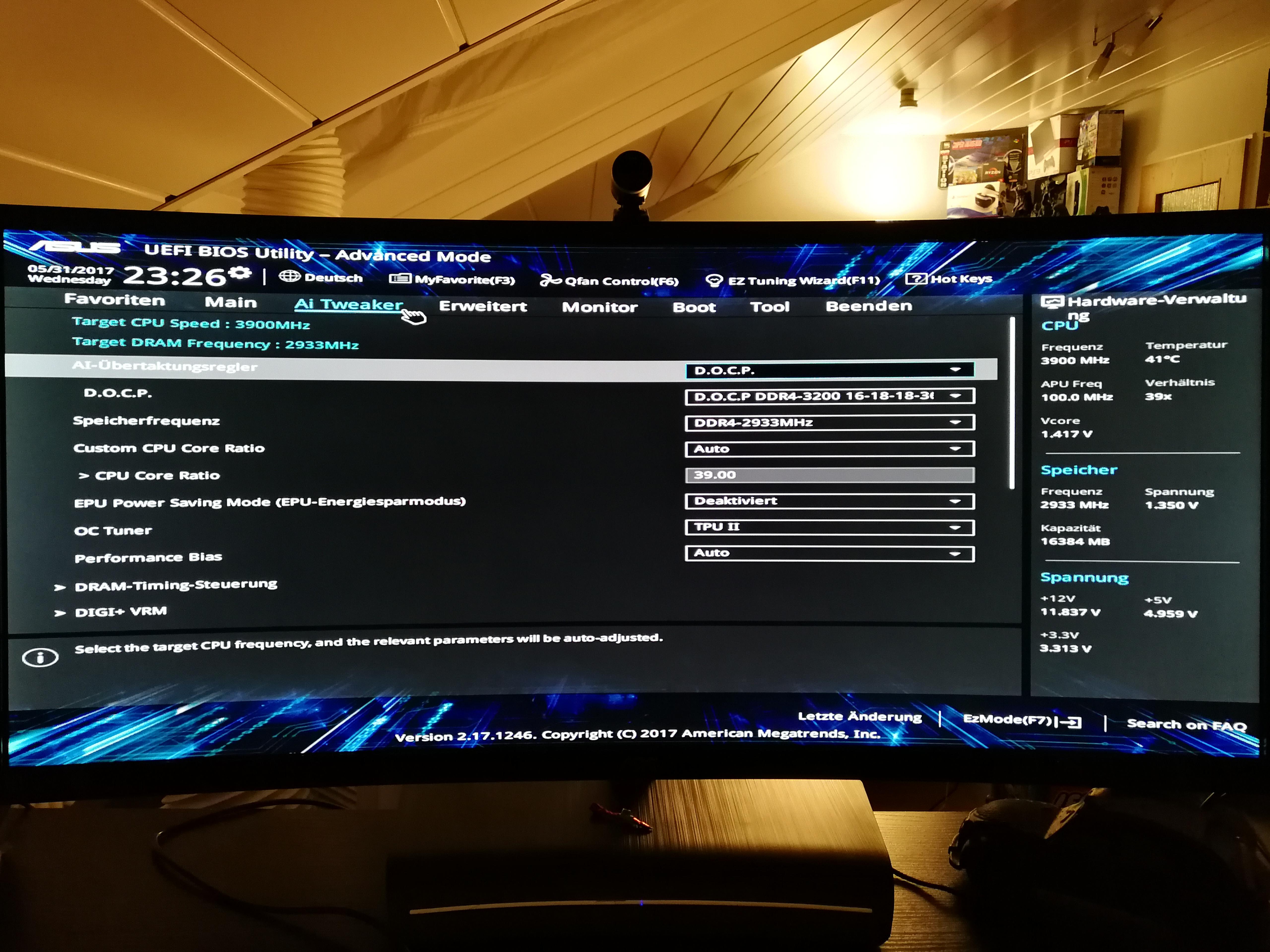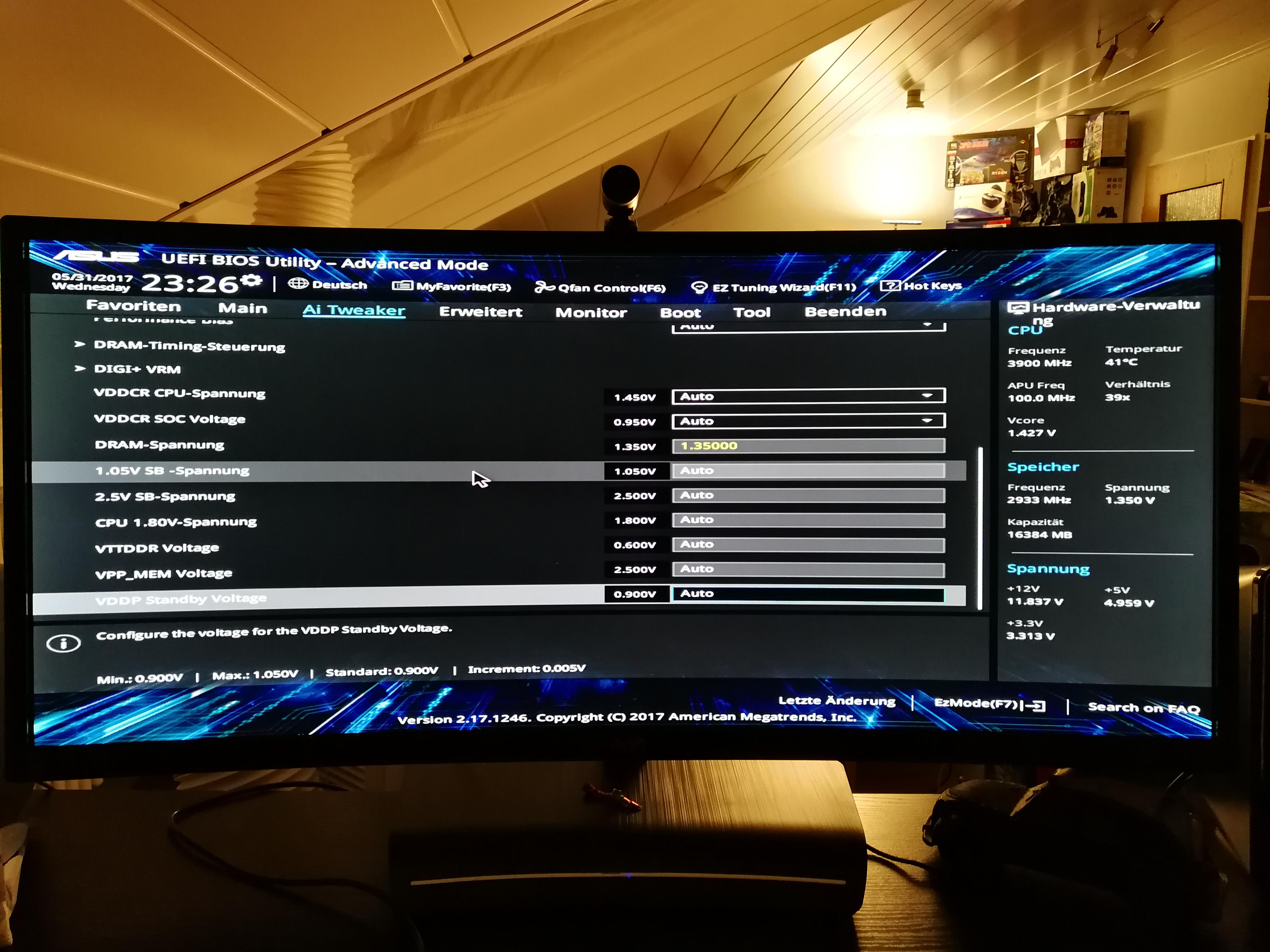 Mit 1,35V und 2933 MHz ohne D.O.C.P. startet die Kiste gar nicht mehr.