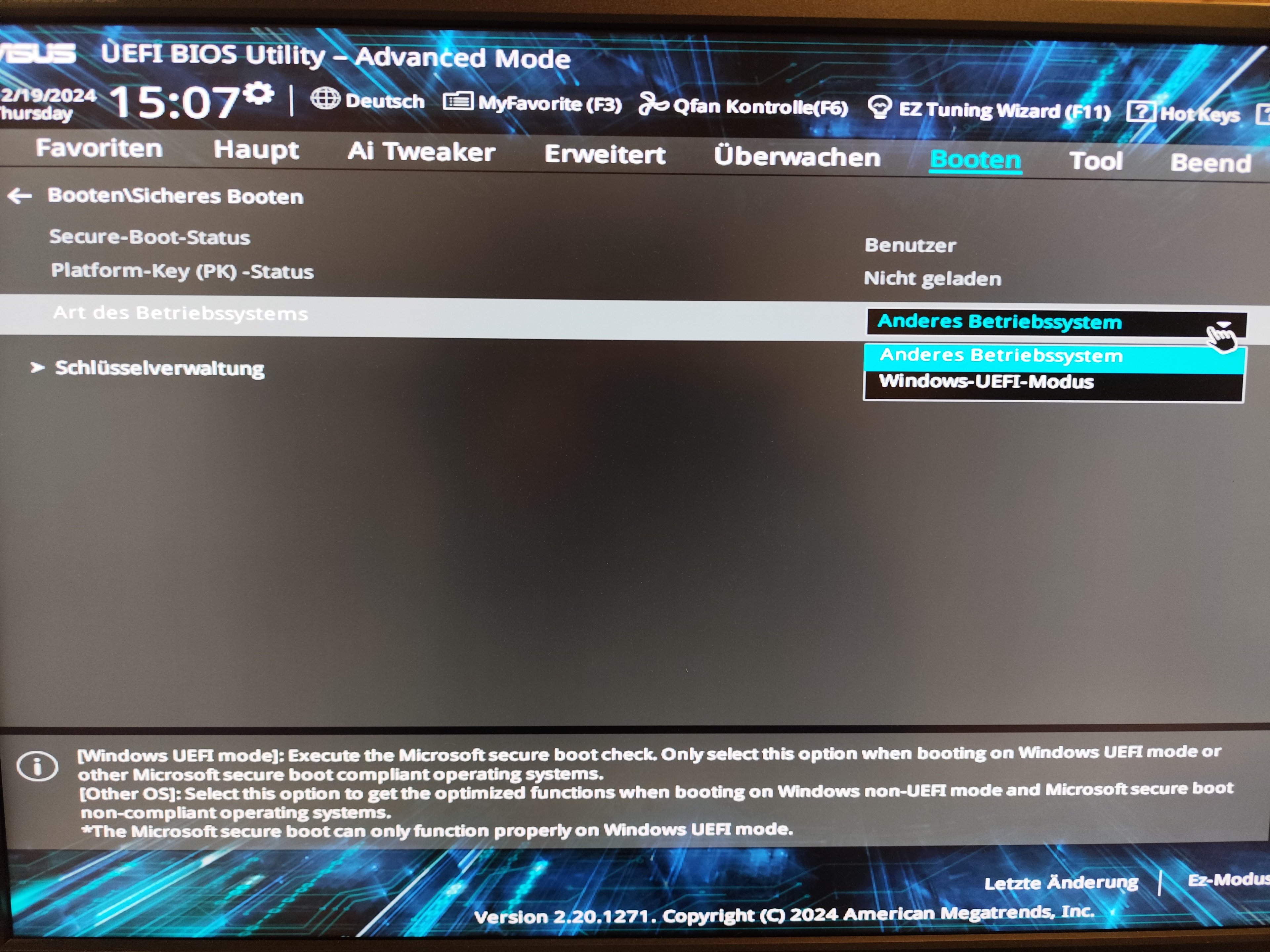 Nun habe ich auf dem anderen PC das Hilfsprogramm bzgl. Windows-11-Kombatibilität laufen lassen. Dieses sagt mir, das der PC wegen Secure Boot nicht lauffähig ist. Auf beiden werkelt das gleiche Bord. Im BIOS habe ich auf beide im Foto gezeigte Varianten umgestellt, funktioniert beides nicht. Wisst Ihr, was ich übersehe? Grüße von mir, Andy