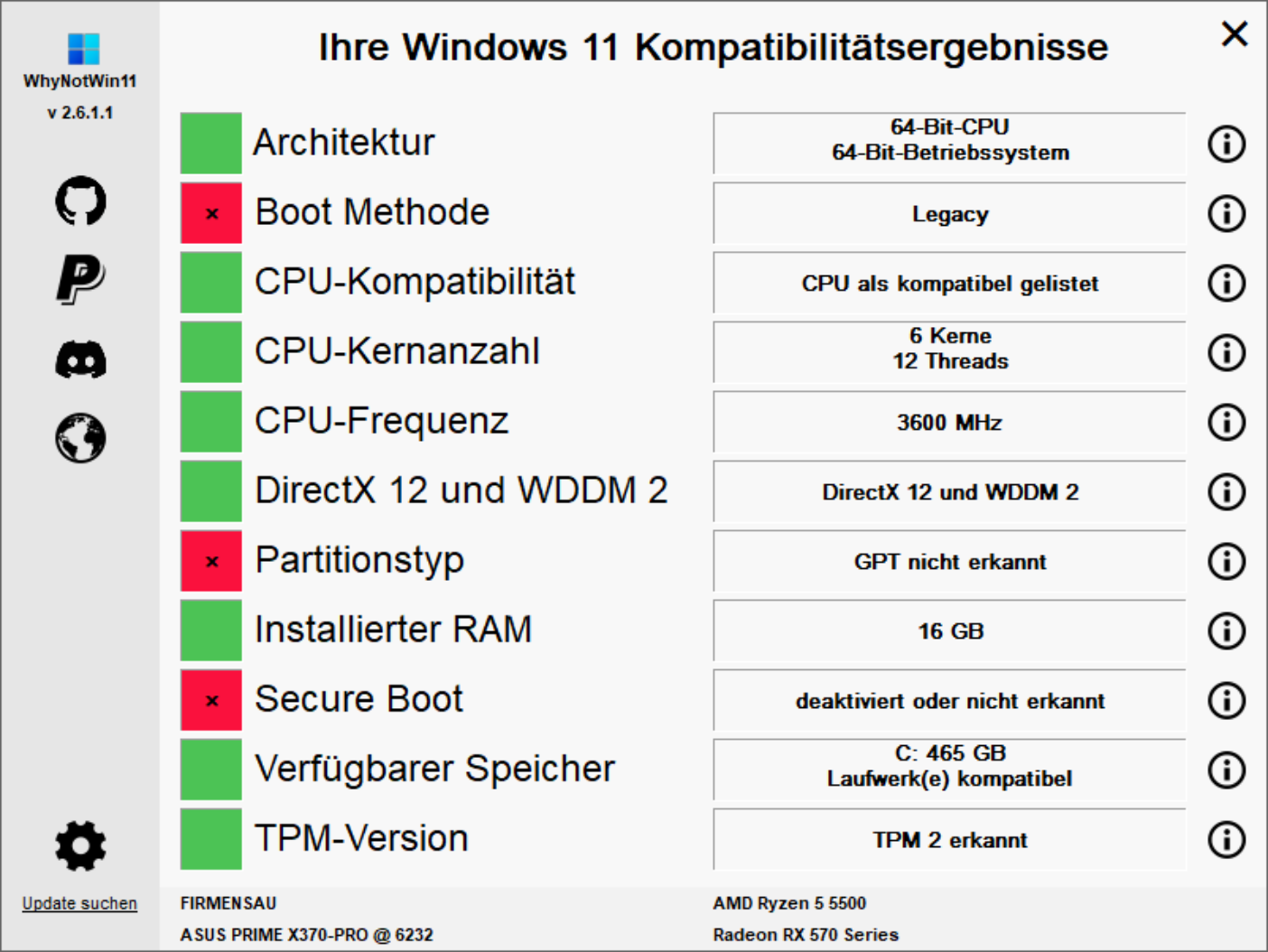 Lade dir mal bitte das Programm WhyNotWin11, starte es und poste davon mal bitte ein Screenshot
