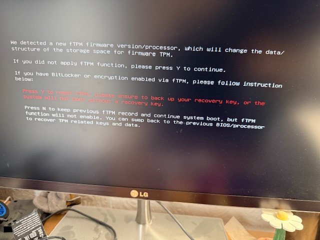 Bis vor einer Woche war ein Ryzen 1600 auf dem Board verbaut, dieser wurde gegen einen 5700X getauscht, schalte ich nun ftpm Firmware im Bios ein, kommt folgende Meldung nach der Bios Innitialisierung