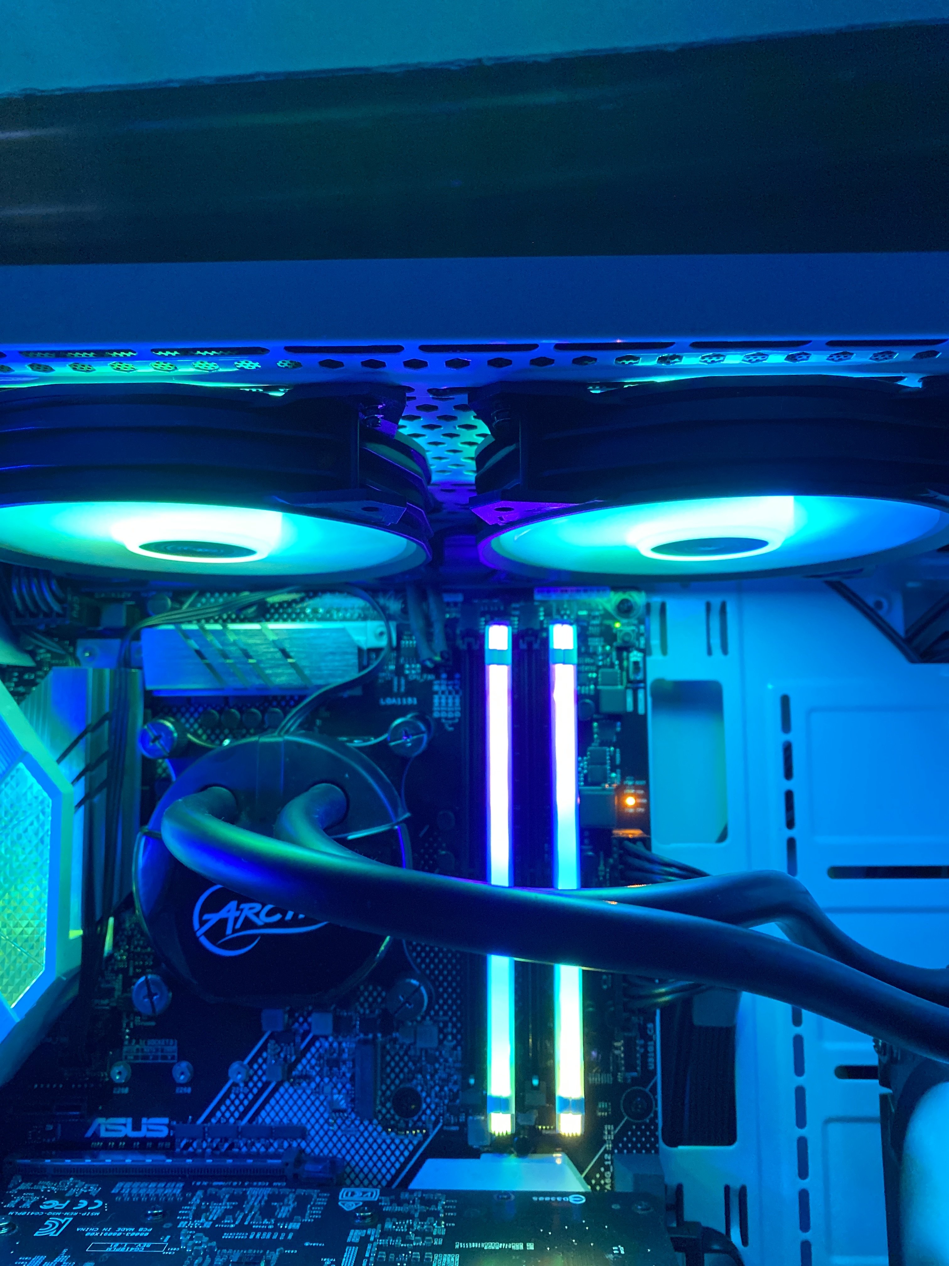 Ich habe heute mir eine Neues Setup zusammengebaut, allerdings möchte der Computer nicht Starten.. es erscheint kein Bild (Black Screen) und damit komme ich auch nicht ins bios. Alles was passiert ist das beim einschalten die CPU-LED kurz rot leuchtet und dann geht er über zur Orangenen (Gelben) DRAM LED und bleibt dort und es passiert nichts. Lüfter, Kühler usw. laufen alle!