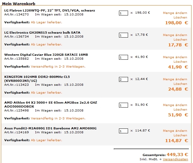 Welchen RAM und welche CPU könnt ihr für dieses Gehäuse empfehen? Ich häng mal meinen aktuellen Warenkorb bei hoh.de ran...