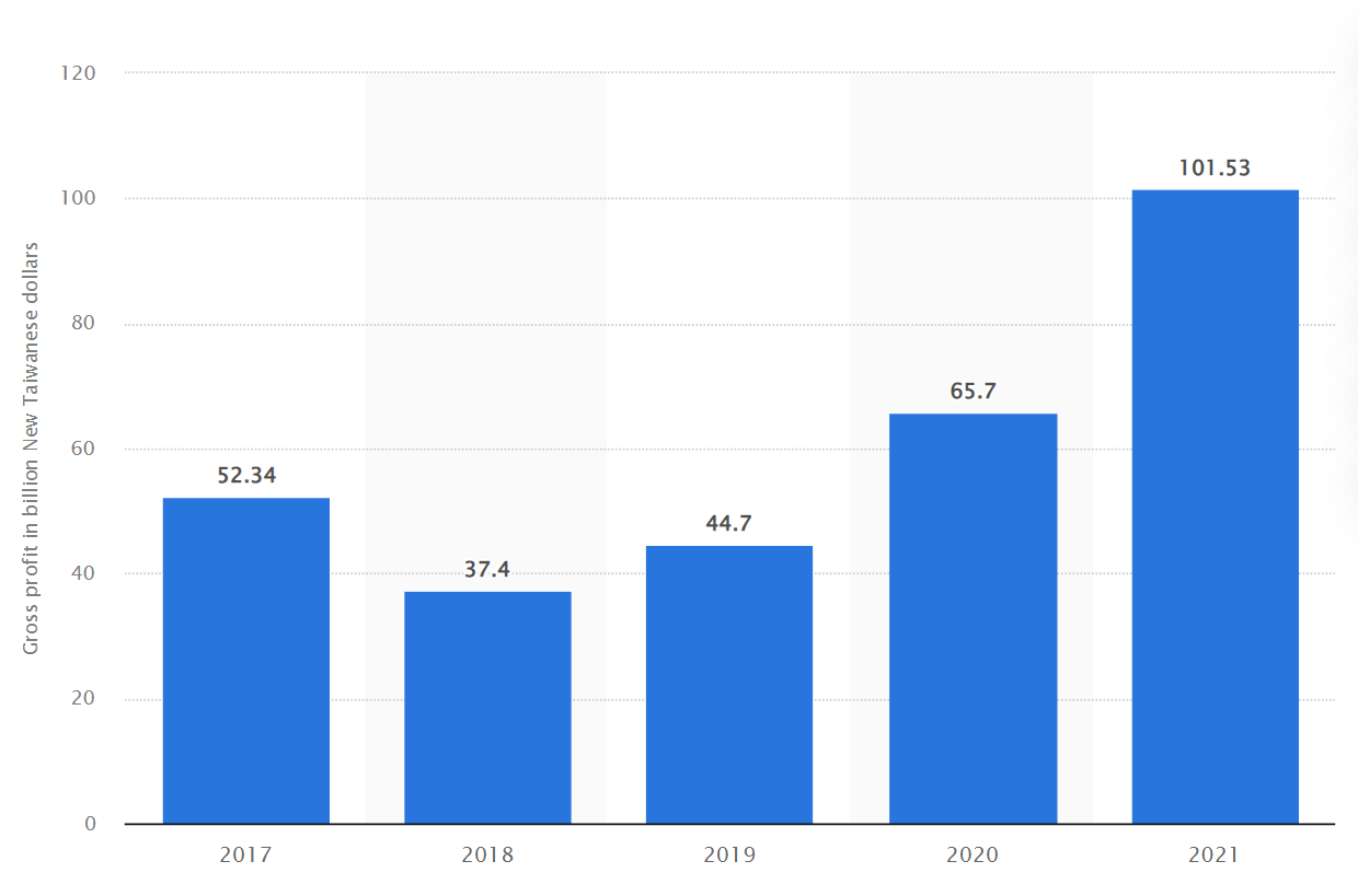 Umsätze Q1/22 (128 Mrd NT$)Q2/22 (115 Mrd NT$) = 243 Mrd NT$ im ersten Halbjahr 2022