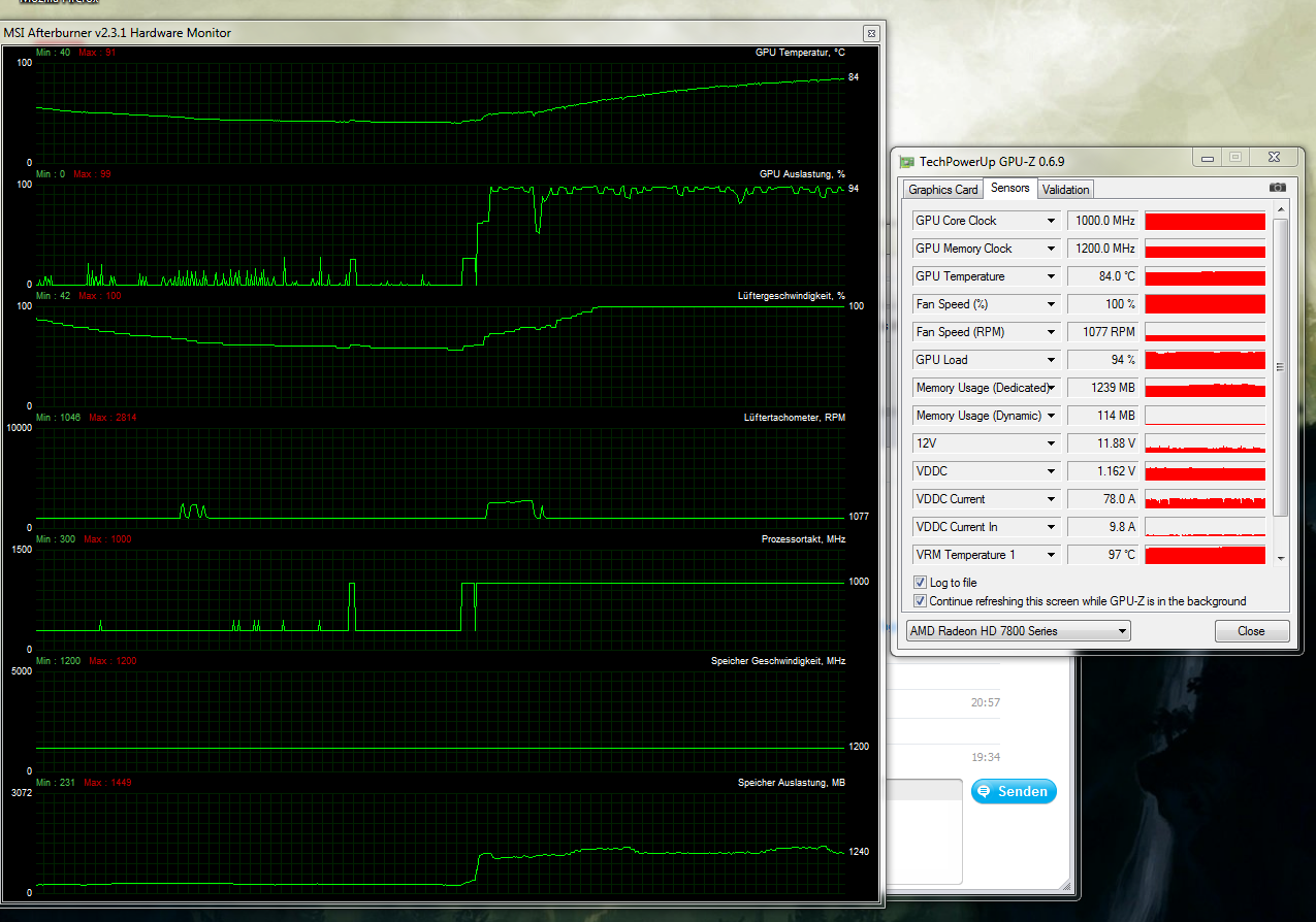 ich habe mir heute meine neue Asus Radeon HD 7870 DirectCU II v2 eingebaut und habe sie auch gleich mal ordentlich getestet. Was mcih allerdings ein wenig stutzig gemacht hat, ist dass sie sehr schnell doch recht warm wird, bei voller last. Und ich rede hier von Temperaturen weit über 90°. Ich hatte gelesen, dass grade die Asus eigentlich nicht über 70 geht. Ist da was kaputt? liegt das an den einstellungen? Aufgetreten ist das problem sowohl bei Tomb Raider, als auch beim Unigine Valley Benchmark...