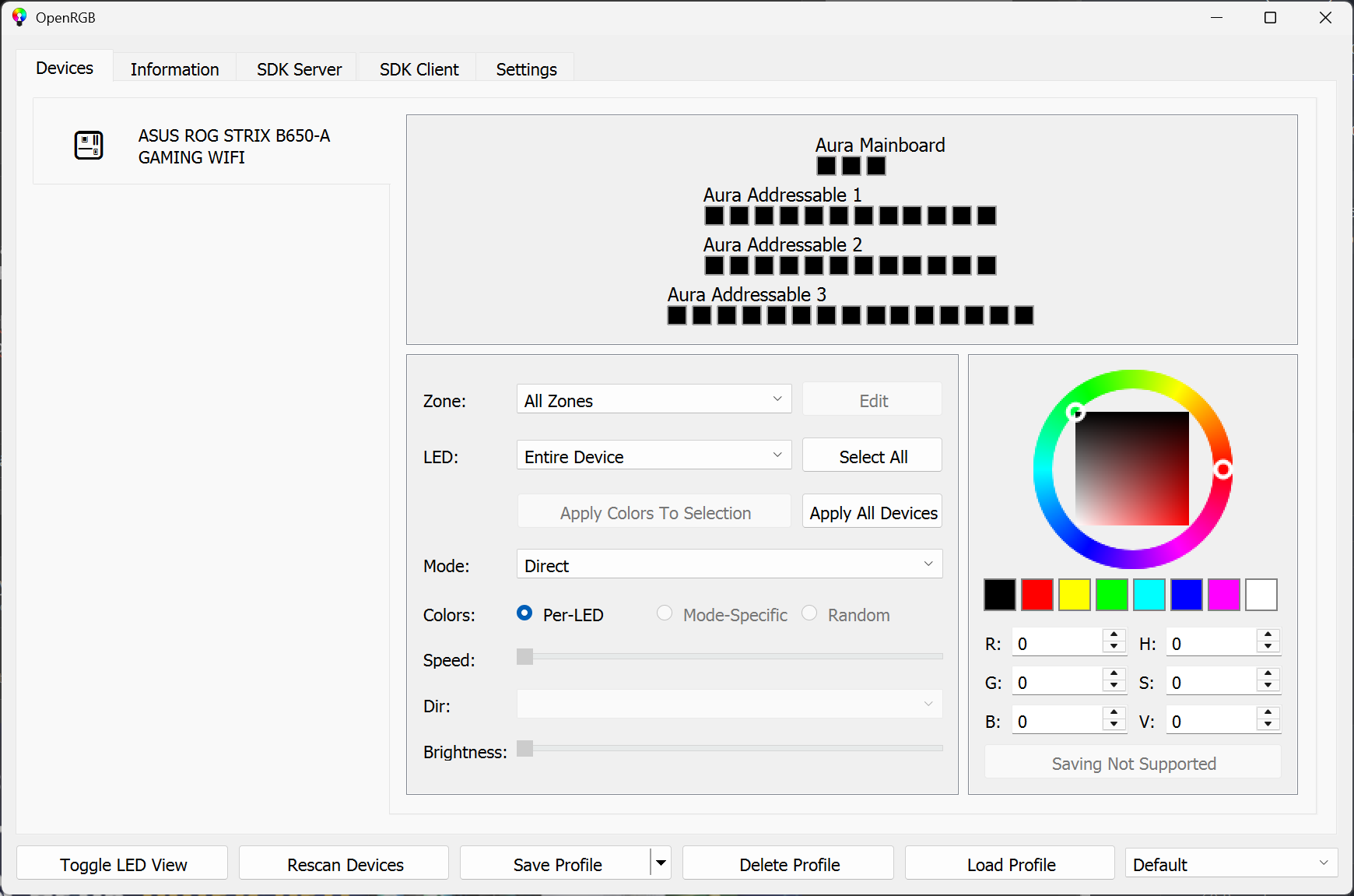 ... Da die RGB Steuerung von Asus (Armoury Crate mit Aura) überhaupt nicht funktioniert (kann bspw. das Mainboard via AC nicht updaten !? daher wird auch nicht alles erkannt, die Einstellungen nciht übernommen und beibehalten...) habe ich Open RGB installiert. Das kann bisher alles ansteuern (beide RAM Riegel, GPU und die RGB Header am MB), erkennt allerdings die in Reihe geschaltenen RGB Header der Lüfter nicht. Muss ich das irgendwo einstellen ?