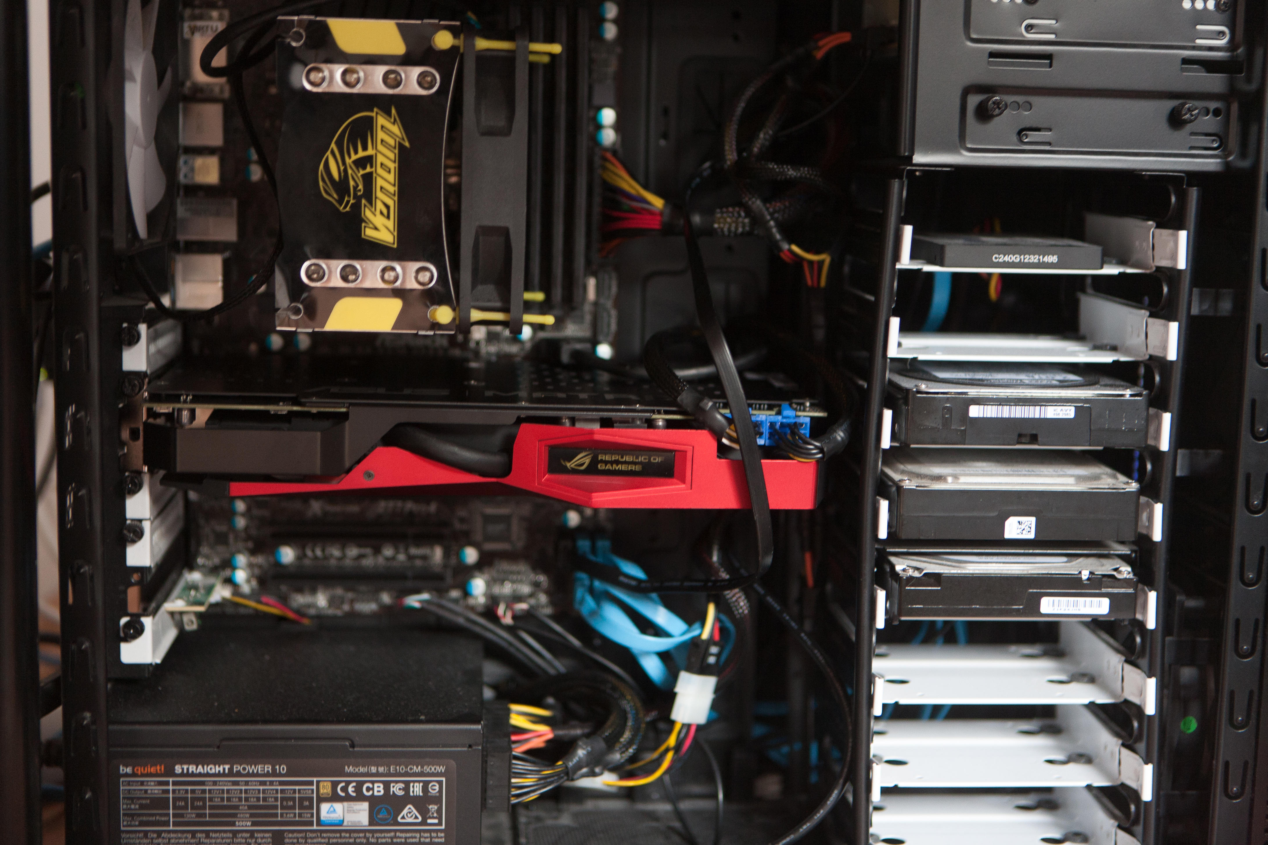 Ist schon eine ziemlich exzessive Karte, aber dafür dass das Gehäuse unverändert mit der originalen Belüftung läuft und de facto kein Luftstrom mehr vorhanden sein dürfte, eigentlich ein ganz gutes Ergebnis. Leider schaffe ich es in UHD auch mit mittleren Details nur auf durchschnittlich 30fps in The Witcher