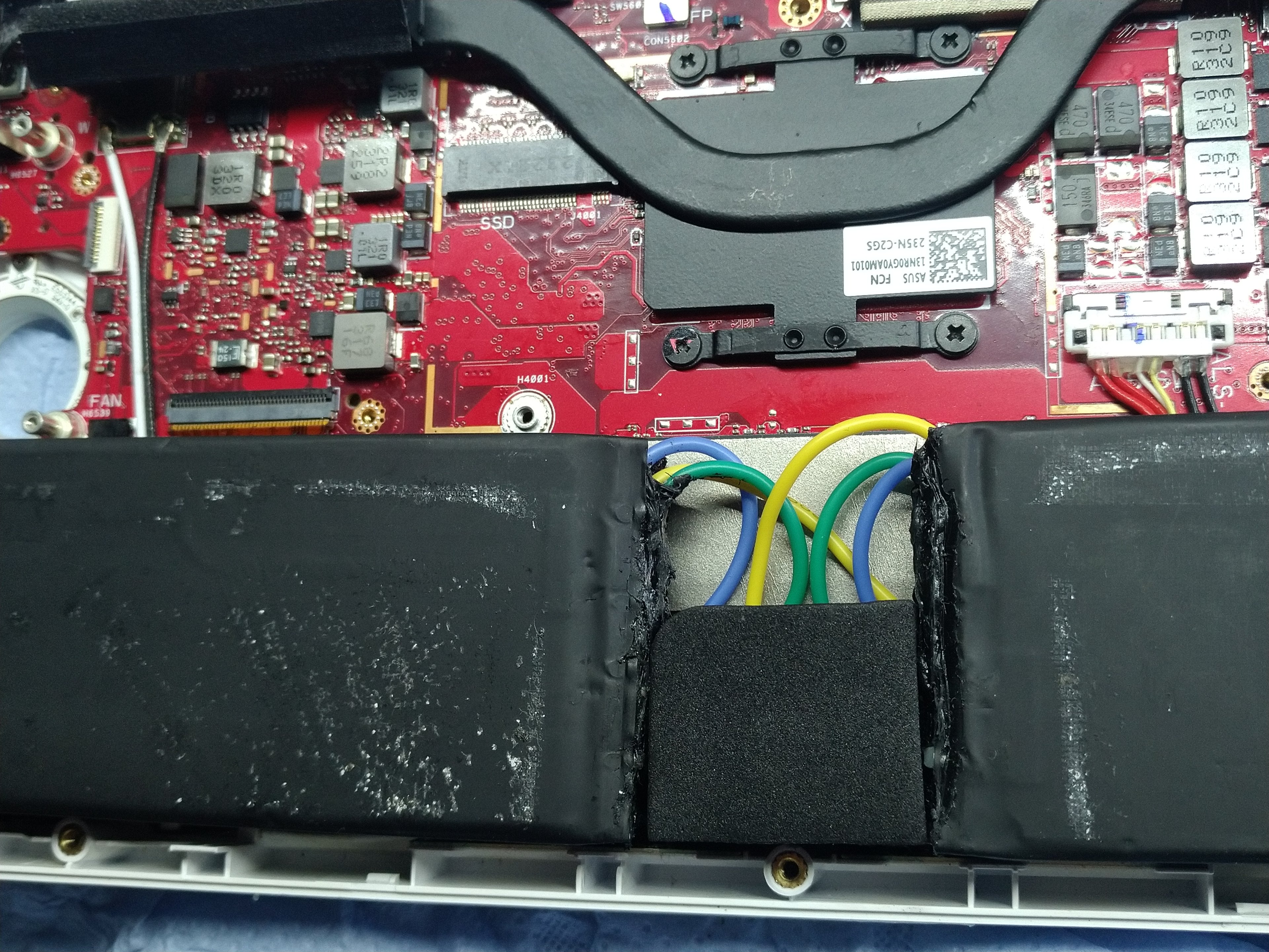 Als nächstes war der Akku-Umbau dran: Der 72Wh Akku ist ein C41N1825 (kostet ~42,60€; man sollte aber den nachbau verwenden, der Original-Akku soll wohl etwas andere zellen haben).