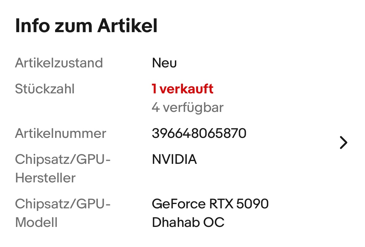 bevor ich 19000€ für eine 5090 mit extra 6,5 Gramm Gold ausgebe, hole ich mir einen starken aber nicht schwachsinnigen Gaming Rechner aus regulärer eigener DIY Fertigung, gehe zu meiner Hausbank und zahle bei dem derzeitigen Kurs etwa 1000€ für einen kleinen 999er Goldbarren mit 10 Gramm Gewicht, klebe diesen an die Gehäusefront. Falls mir das nicht reichen sollte, tapeziere das Case mit so viel 24 karatiges Blattgold wie gewünscht und ohne den Airflow zu beeinträchtigen. Die verbliebenen (mindestens) 14000€ werden konservativ angelegt und alle 3 bis 4 Jahre für den Kauf / Upgrade eines neuen starken DiY Rechners genutzt, bis das Geld aufgebraucht ist (was nicht vor der dritten Neuanschaffung in frühestens 9 Jahren der Fall sein sollte) - den kleinen Barren behält man natürlich mit dem Case / klebt es an das neue Case.