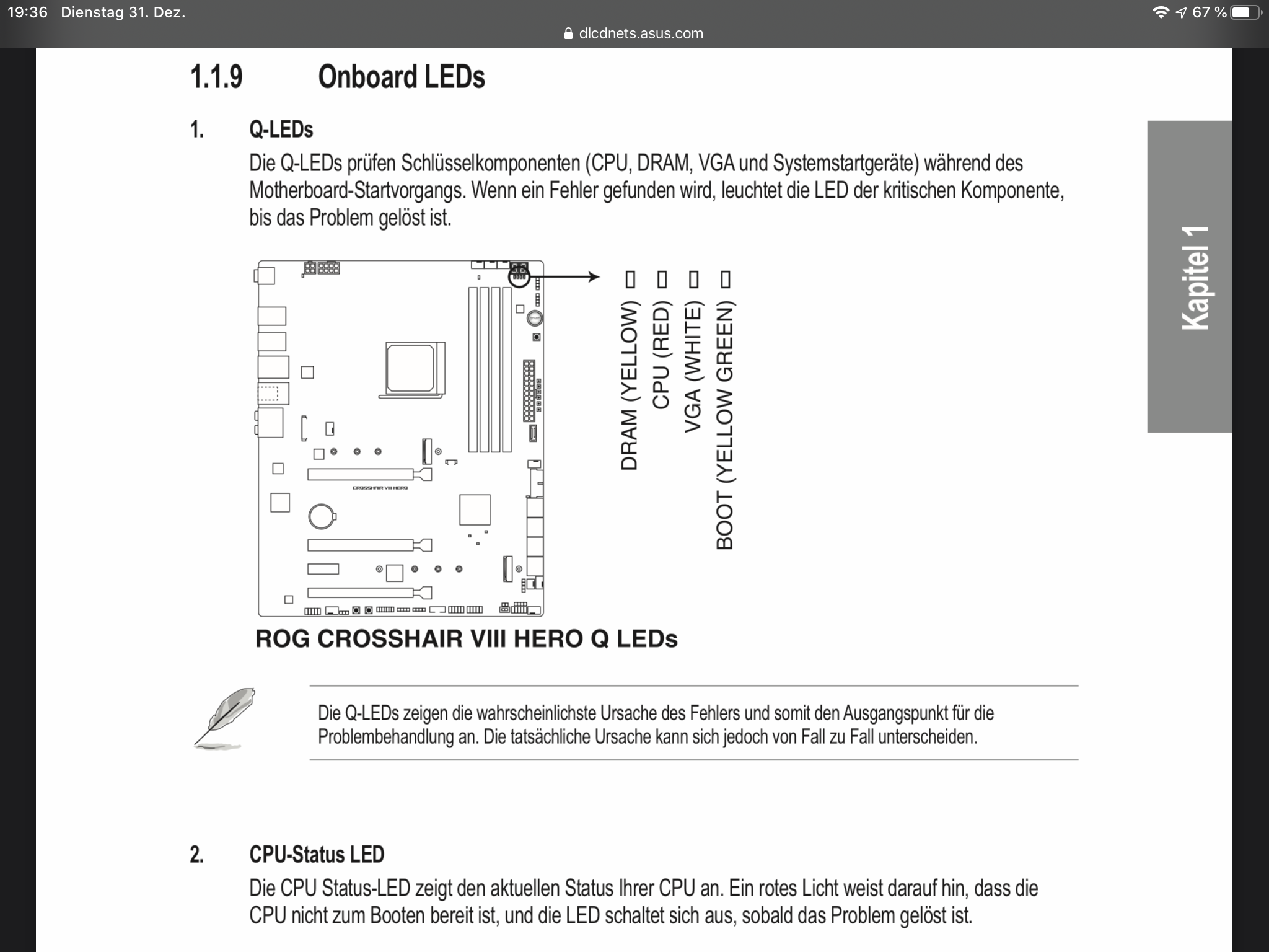 Mein Motherboard hat Q Code, wo ich die Fehler sehen kann aber im Fall gibt es viele Fehler, dass die Zahl auf dem Display immer ändert.
