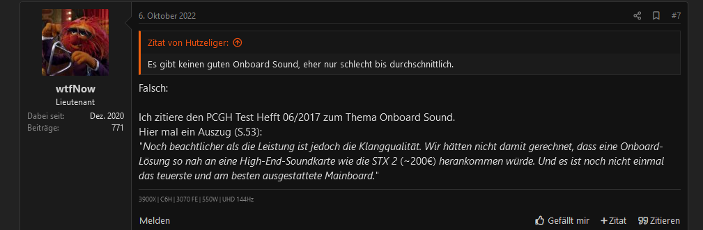 Die Legende dass Soundkarten/DACs an guten obere Mittelklasse+ Mainboards irgendwas verbessern sollen hält sich seit Jahren hartnäckig wie Kaugummi am Schuh.