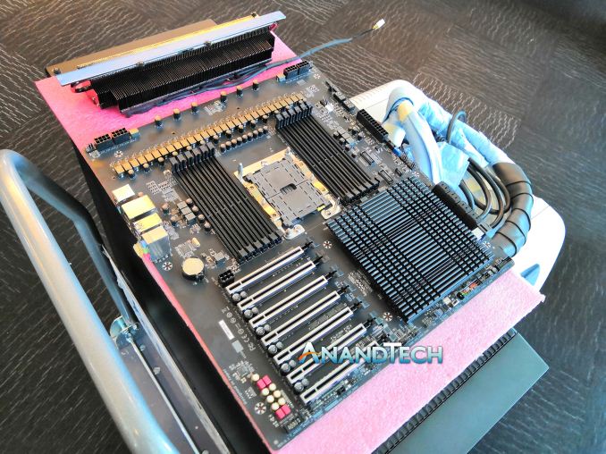 Das Mainboard für den AMD-Prozessor auf dem verlinkten Foto von Anandtech scheint auch ansonsten das bessere Design zu haben. So hat es 7 PCI-E-Slots anstatt, wie beim Asus, nur lächerliche 4 und die Speicherbänke sind engstmöglich und absolut symmetrisch zum Prozessor angeordnet und nicht mit einer Lücke zum äußersten DIMM-Sockel wie beim Asus der Fall.