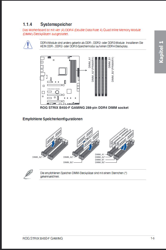 ASUS ROG Strix B450-F Gaming bootet nicht, wenn RAM im DIMM_A2 oder DIMM_A1 Steckplatz installiert ist.