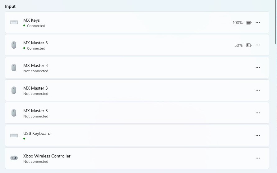 Die Bluetooth Geräte (Logitech MX Keys, Logitech MX Master 3, XBox Controller) wurden getestet und funktionieren an anderen Geräten problemlos. Die Verbindung wird nicht durch andere Geräte "blockiert" Sie sind mit dem genannten System gepaart.