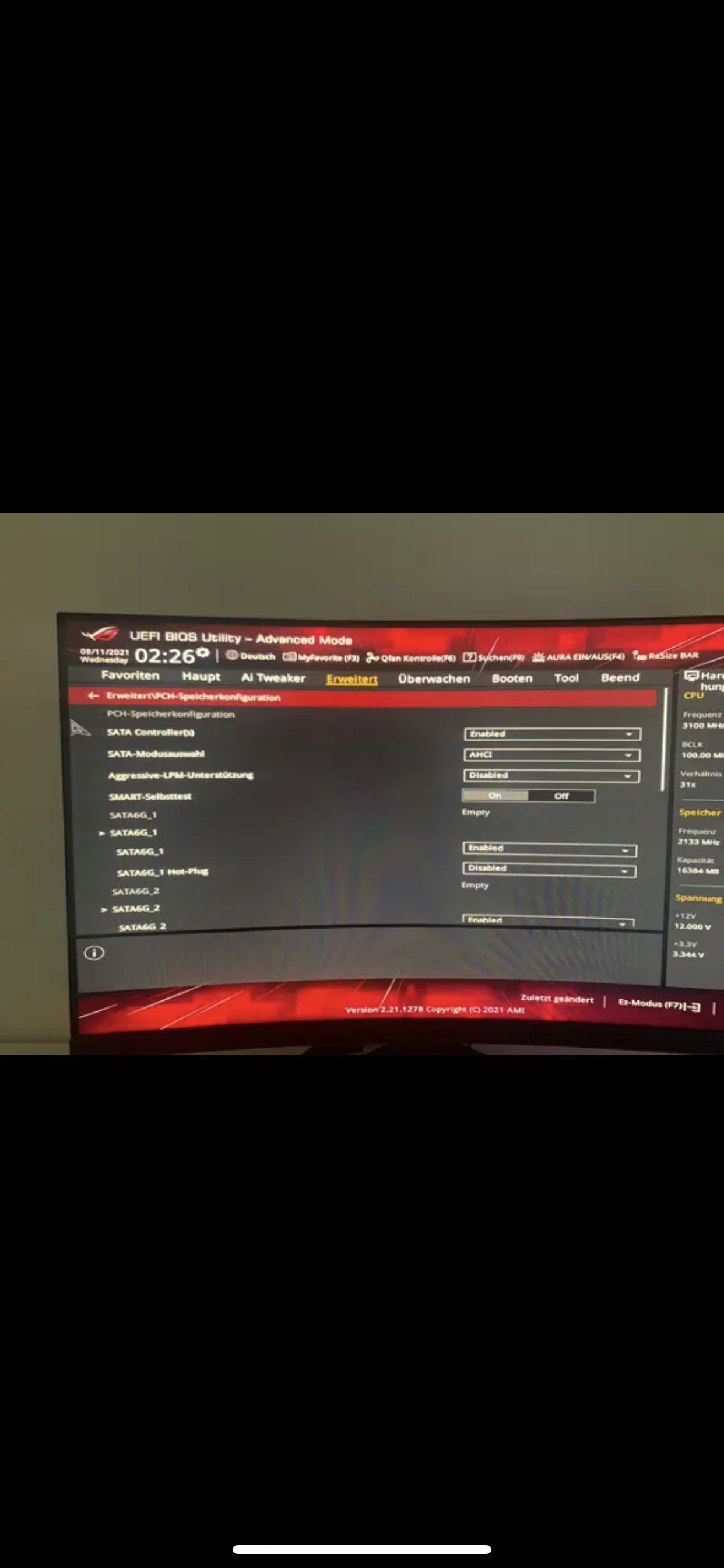 Ich habe sie wie immer im oberen Slot angeschlossen und auch keinerlei andere Sata Geräte angeschlossen, sie wurde beim 1. Pc beim unteren Sata Anschluss erkannt oben allerdings nicht.