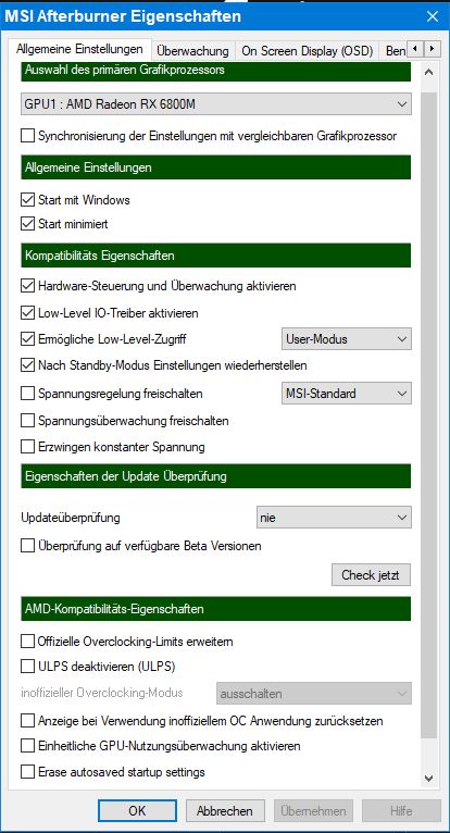 Hat jetzt nichts mit RSR zu tun aber da per PM keine Bilder möglich sind hier mal ein bild zu MSI AFTERBURNER und einstellungen welche geringst belastent sein müssten wenn eh nur das OnScreenDisplay OSD zum anzeigen von Sensorwerten nutzbar ist . . .Shauntre schrieb:Grüße Zurück.
