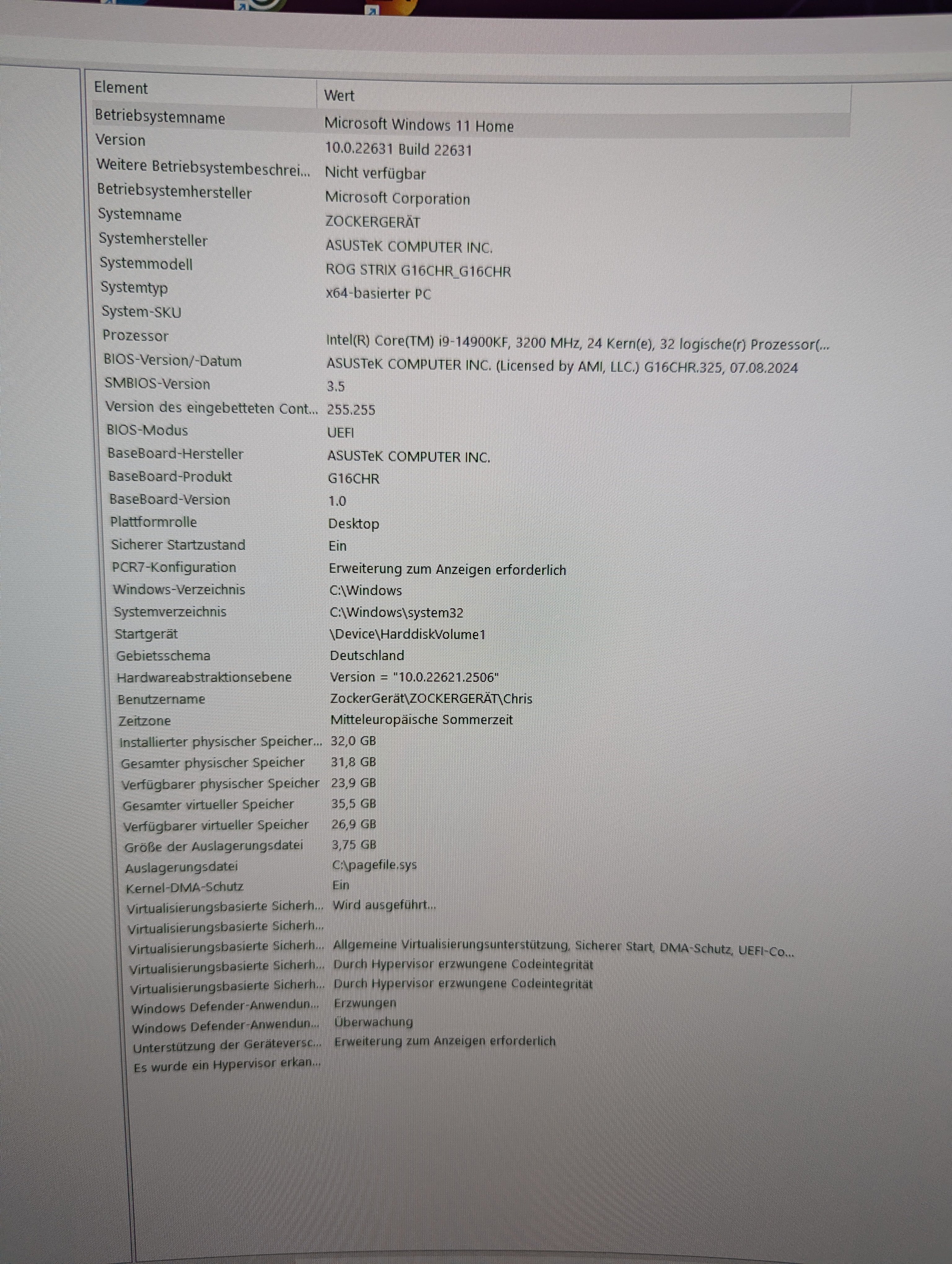 ich habe folgendes Problem, und zwar habe ich ein Asus Rog Strix G16CHR Gaming Pc bekommen von meiner Frau.