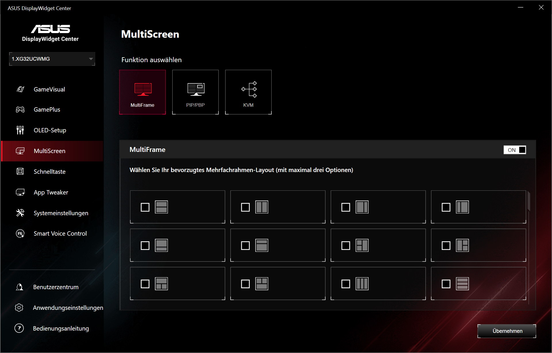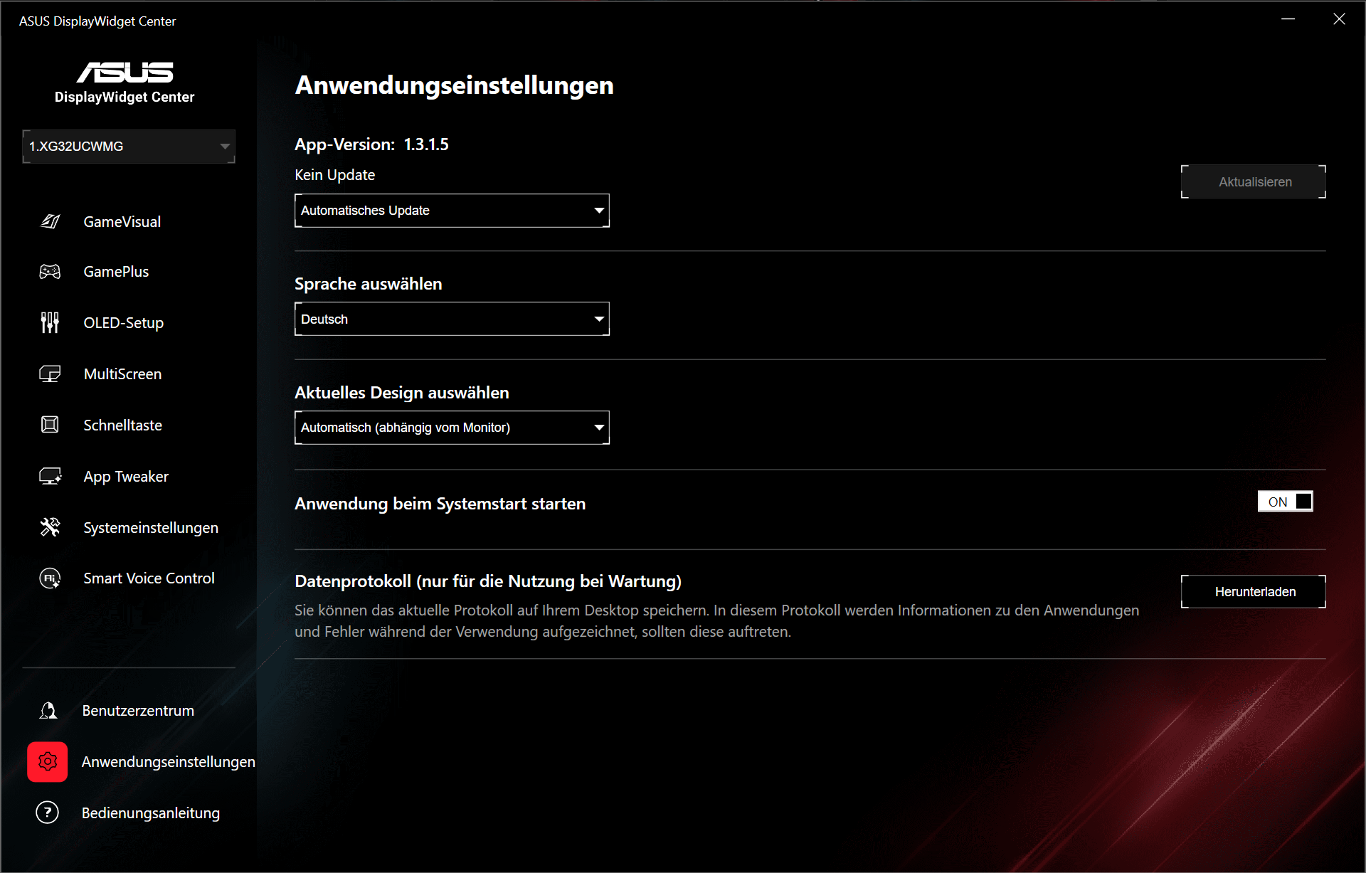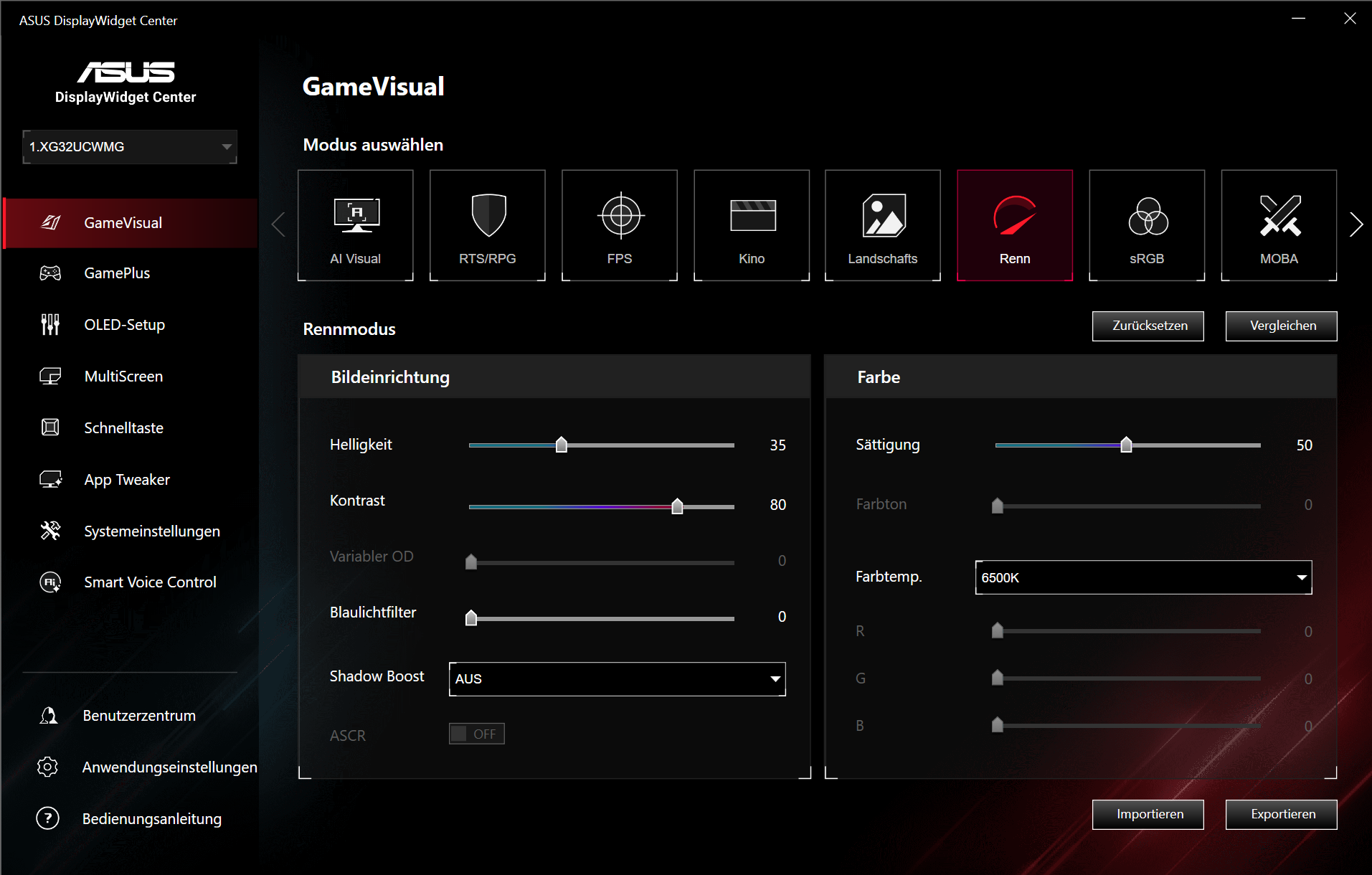 Mittels Asus-Software (ASUS_DisplayWidget_Center) lassen sich auch Einstellungen direkt über den PC umstellen. Für mich reicht aber das OSD des Monitors aus, daher habe ich auf diese Software verzichtet. Möchte aber trotzdem kurz darauf eingehen und ein paar Screenshots dazu zeigen.