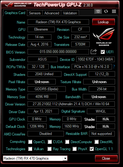 Am Sonntag habe ich mir eine gebrauchte ROG Strix RX470, 4 GB gekauft (bei den momentanen Preisen wollte ich nichts moderneres, dachte, für Skyrim sollte es schon ausreichen) und in den PCIe-Slot geklemmt. Seit dem (jetzt ist Dienstagnachmittag) bin ich mit der blöden Karte beschäftigt.