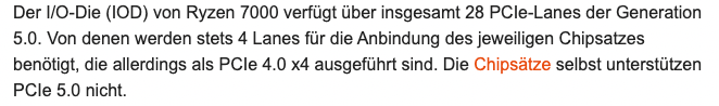 Der X670E-Chipsatz stellt seinerseits wiederum bis zu 44 Lanes zur Verfügung, darunter bis zu 24 Lanes für PCIe 5.0, 12 Lanes für PCIe 4.0 und 8 Lanes für PCIe 3.0. Diese Angaben sind "Maximalangaben" und obliegen dem Willen des Mainboard-Herstellers, das ist mir bekannt.