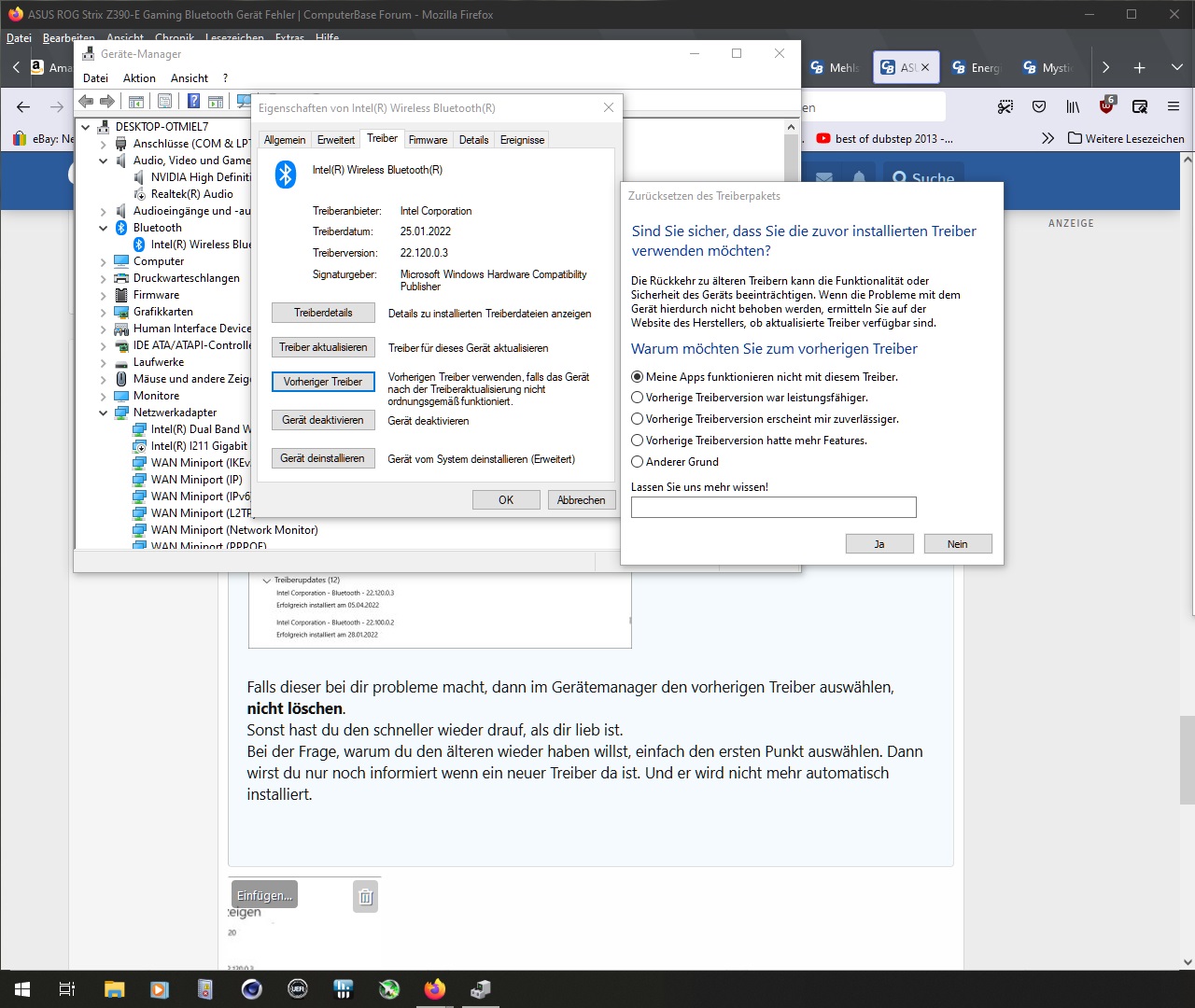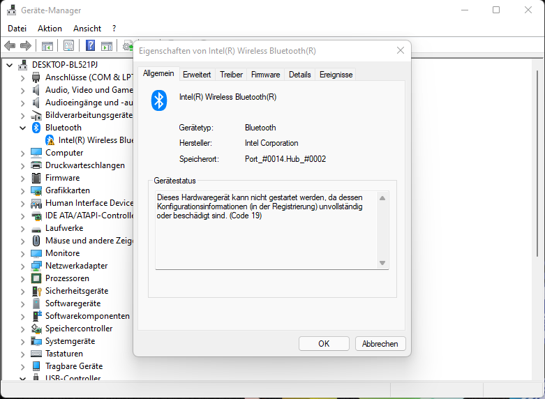 ich habe das Problem, das mein OnBoard Bluetooth nicht richtig funktioniert.