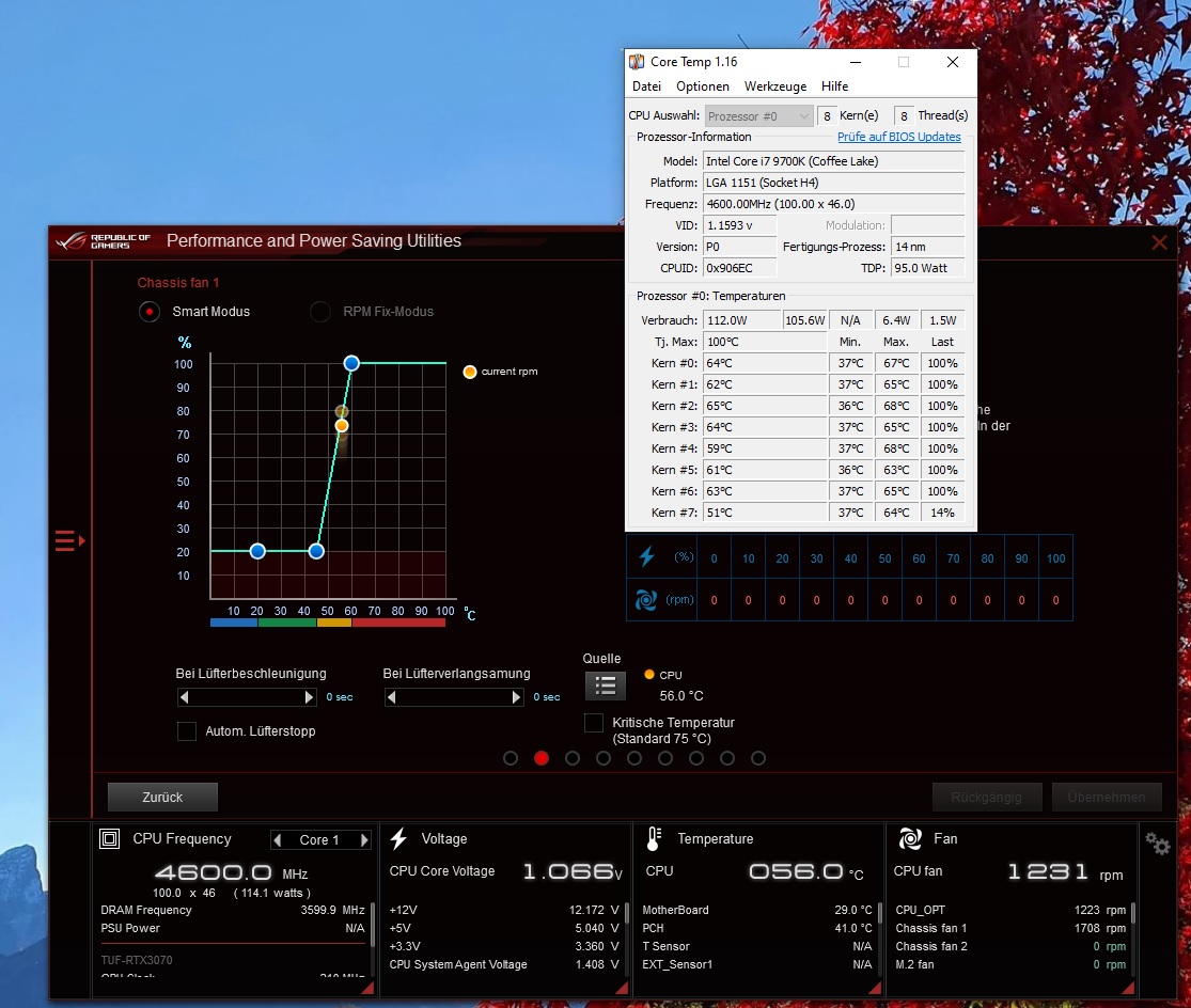 Ich habe o.g. Board und verwende PWM Lüfter, sowohl die Originalen vom Noctua N-DH15 als auch den 12x25. Leider werden bei beiden die Lüfterdrehzahlen nicht richtig gesteuert. Ich habe sie so eingestellt, dass sie bei 70°C CPU Temperatur bei 100% laufen sollen. Leider taten sie dies nicht, also habe ich das jetzt bis auf 60°C heruntergestellt aber dennoch laufen sie nicht bei 100%. Die CPU Temperatur ist über den eingestellten 60°C. Ich möchte auch Hinweise haben, dass man ja sowieso keine Lüfter auf 100% laufen lassen muss, darum geht es hier nicht.