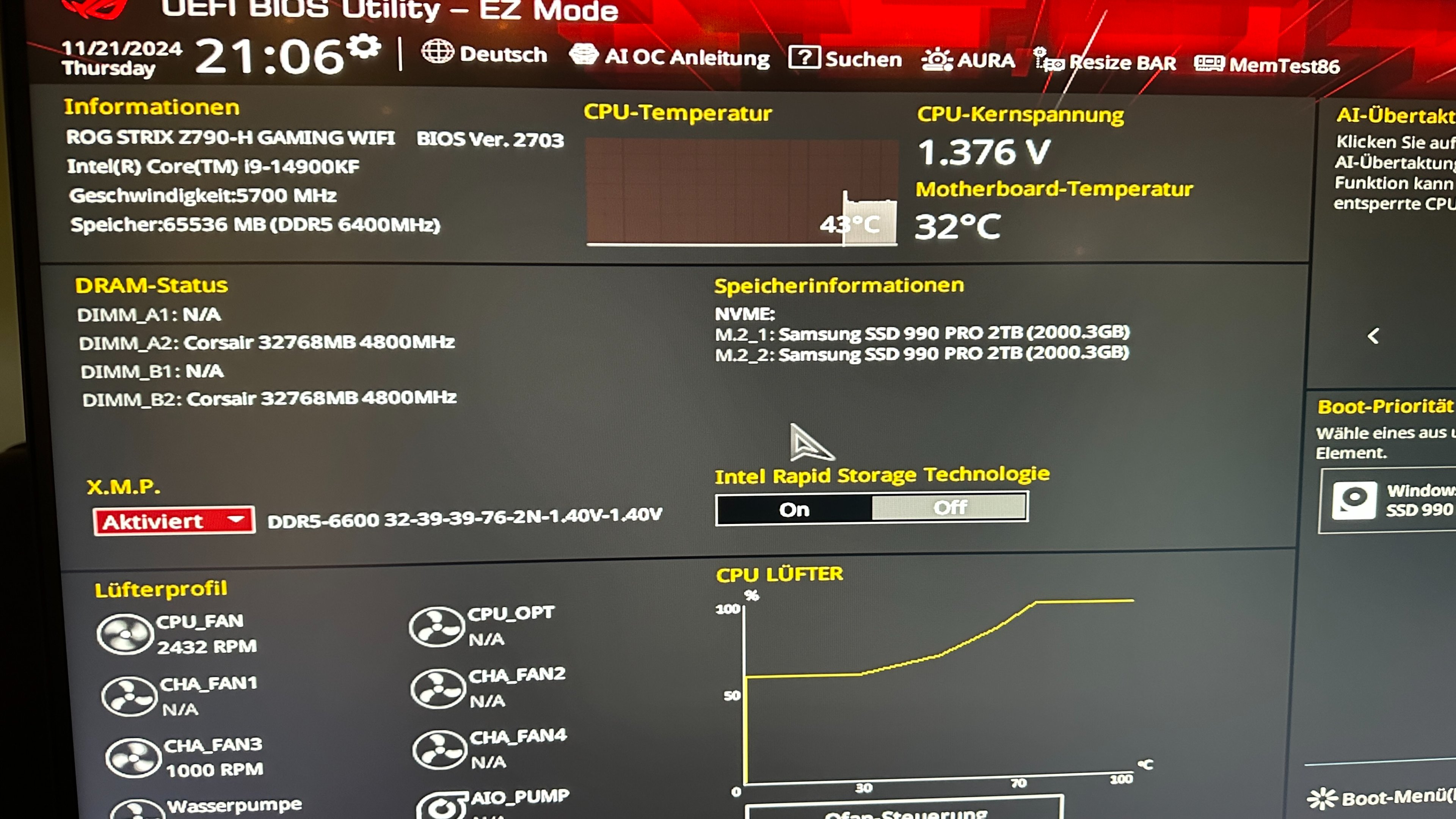 - Arbeitsspeicher (RAM): …2 x 32 GB Corsair Dominator 6400 MHZ
