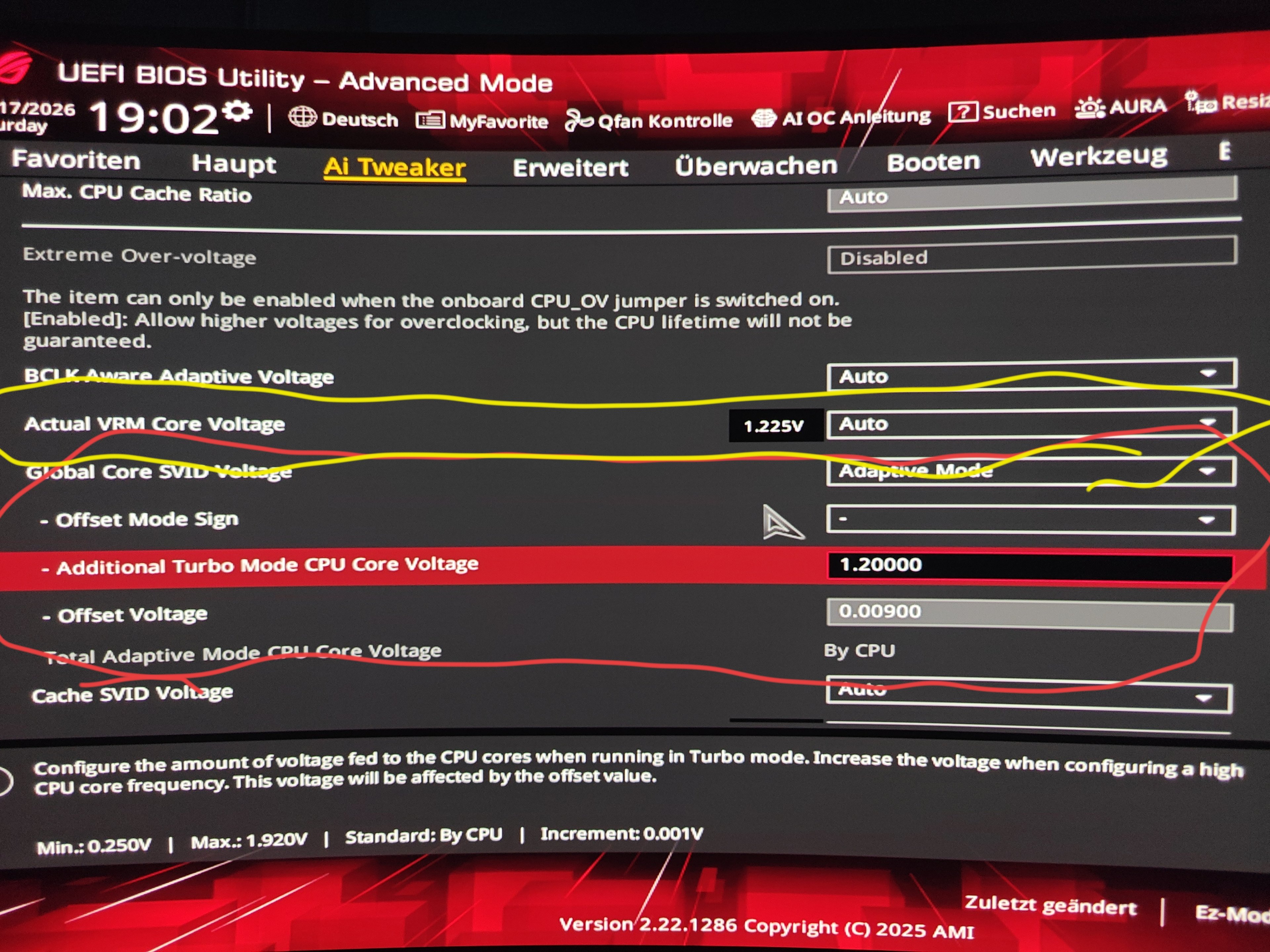 Wenn ich in den Geld eingekreisten z.b manuell 1.185v eingebe mit LLC7, ich mag Vdrop nicht. Dann komme ich auch da aus wo ich hin will. Im idle wenn ich dann bei ca 1, 181 v und unter Last bei 1.161v. Das alles habe ich innerhalb von vielleicht 10 Minuten korrekt für mich einstellen können.