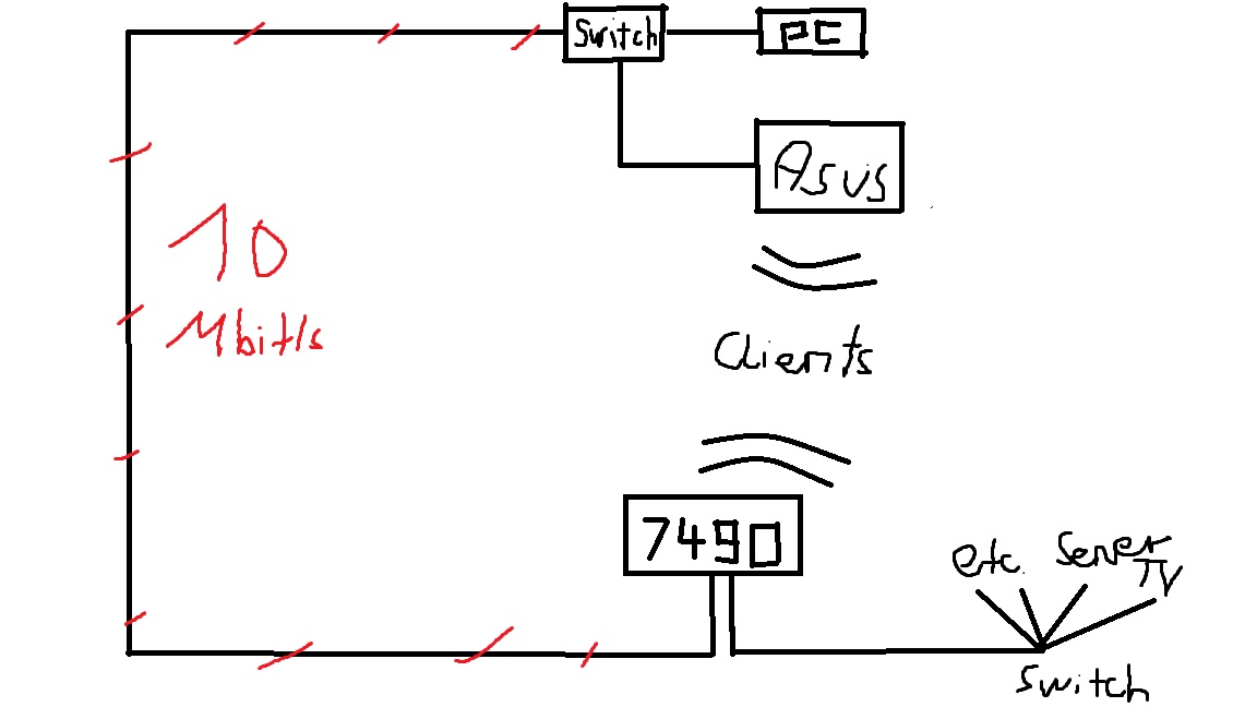 Jedenfalls habe ich dann an den Switch den ASUS RT-AC66U gemacht und auf Repeater Betrieb gestellt (sollte ursprünglich ein AP werden, geht aber noch nicht wegen des 10 Mbit Kabels).