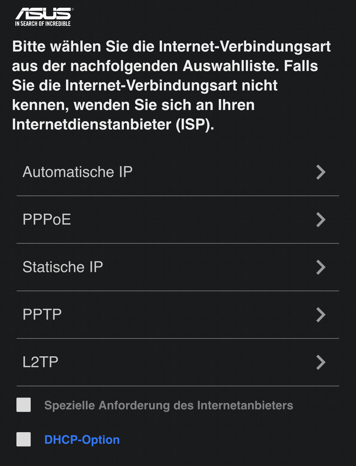Nun habe ich mir einen neuen ASUS-Router (ASUS ZenWiFi Pro XT12) gekauft und bekomme partout keine Internetverbindung über WAN hin. Ich habe die Verkabelung exakt so wie bei der Fritz!Box vorgenommen, aber der ASUS Router stellt keine Verbindung her. Kann mir hier jemand vielleicht helfen, der auch einen ASUS Router und ggf. einen Anschluss bei der Deutschen Glasfaser in Betrieb hat?