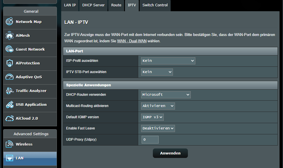 Habe mir einen Asus Router (RT-AC88U) geholt, da er ohne modem nicht funktioniert habe ich meine alte FB 7412 in den Bridgemode davor geklemmt. Habe aber das Problem das z.B. mein Media Receiver von Telekom nur 5 sek. Internet hat bis dann das Bild einfriert.