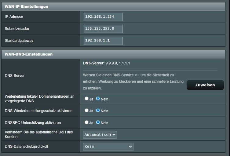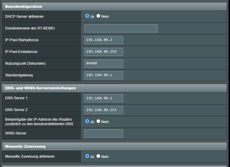 Der DHCO Bereich auf der Asus soll ab 10 beginnen. 1-9 möchte ich fest manuell zuorden. Da sollen die anderen AVM Repeater rein.