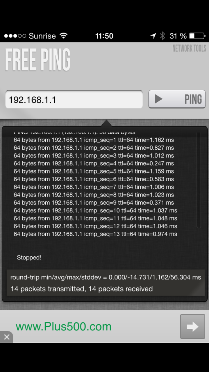 Wiso machst Du nicht Ping über den PC? Über Smartphone und irgendeine App wo keiner weiss was die im Hintergrund genau fabriziert, ist das wenig aussagekräftig.