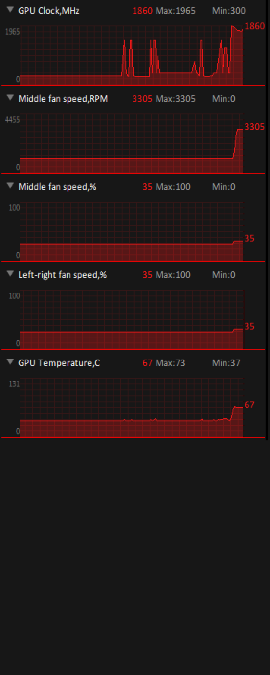 Im Game kommt es dann auch öfters mal zu dropps. Temp geht von jetzt auf gleich auf ca 57° und die Lüfter gehen auch wieder extrem runter. Und eine sek. später geht das alles wieder hoch.