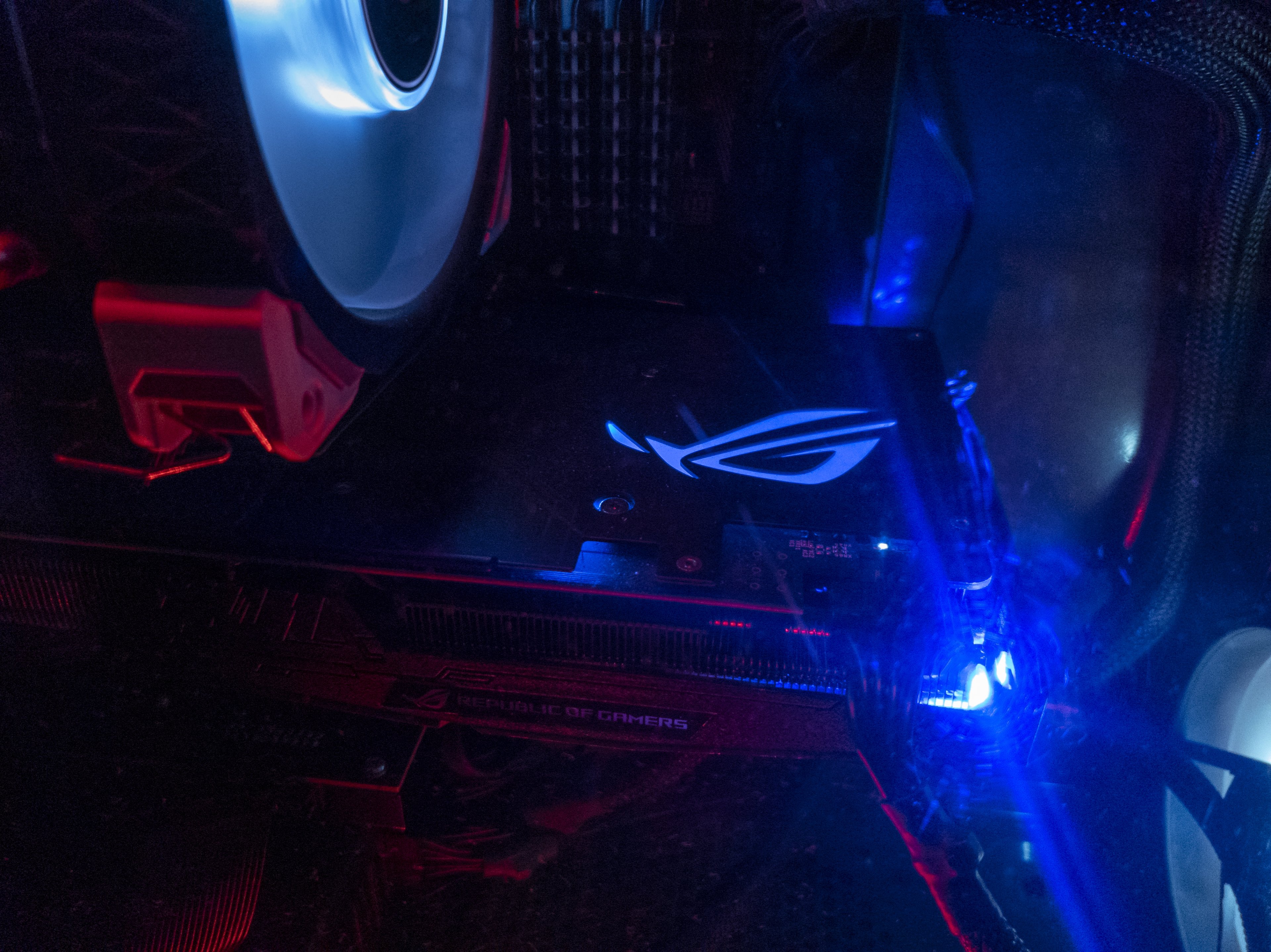 Gestern habe ich mir ein Youtube-Video angesehen, da ich überlege die beiden Karten eventuell mittels Crossfire in einem PC zu betreiben. Dabei ist mir aufgefallen, dass bei den Karten im Video der Republic of Gamers-Schriftzug an der Seite beleuchtet ist. Bei meinen Karten leuchtet nur die Backplate. Da dies bei beiden Karten gleich ist, ist mir nie aufgefallen, dass es anders sein könnte. Ist das ein Zufall und es ist womöglich bei beiden Karten die seitliche Beleuchtung defekt ist, oder kann es auch an irgendwelchen Einstellungen liegen?