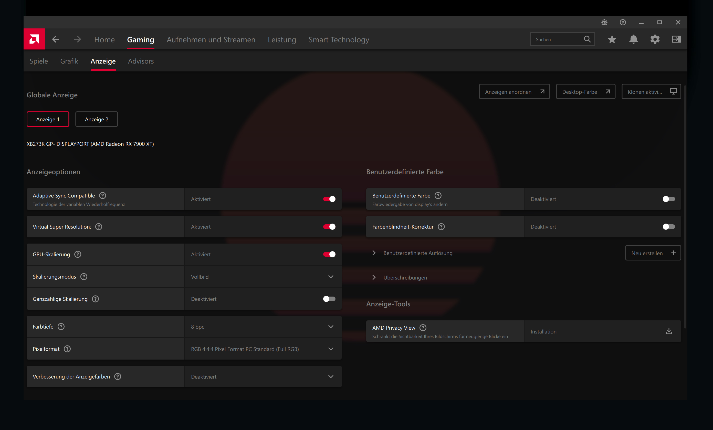 Mit meiner 7900XT und 2 UHD Bildschirmen 1x120Hz Adaptiv Sync und 1x 60Hz Freesync.