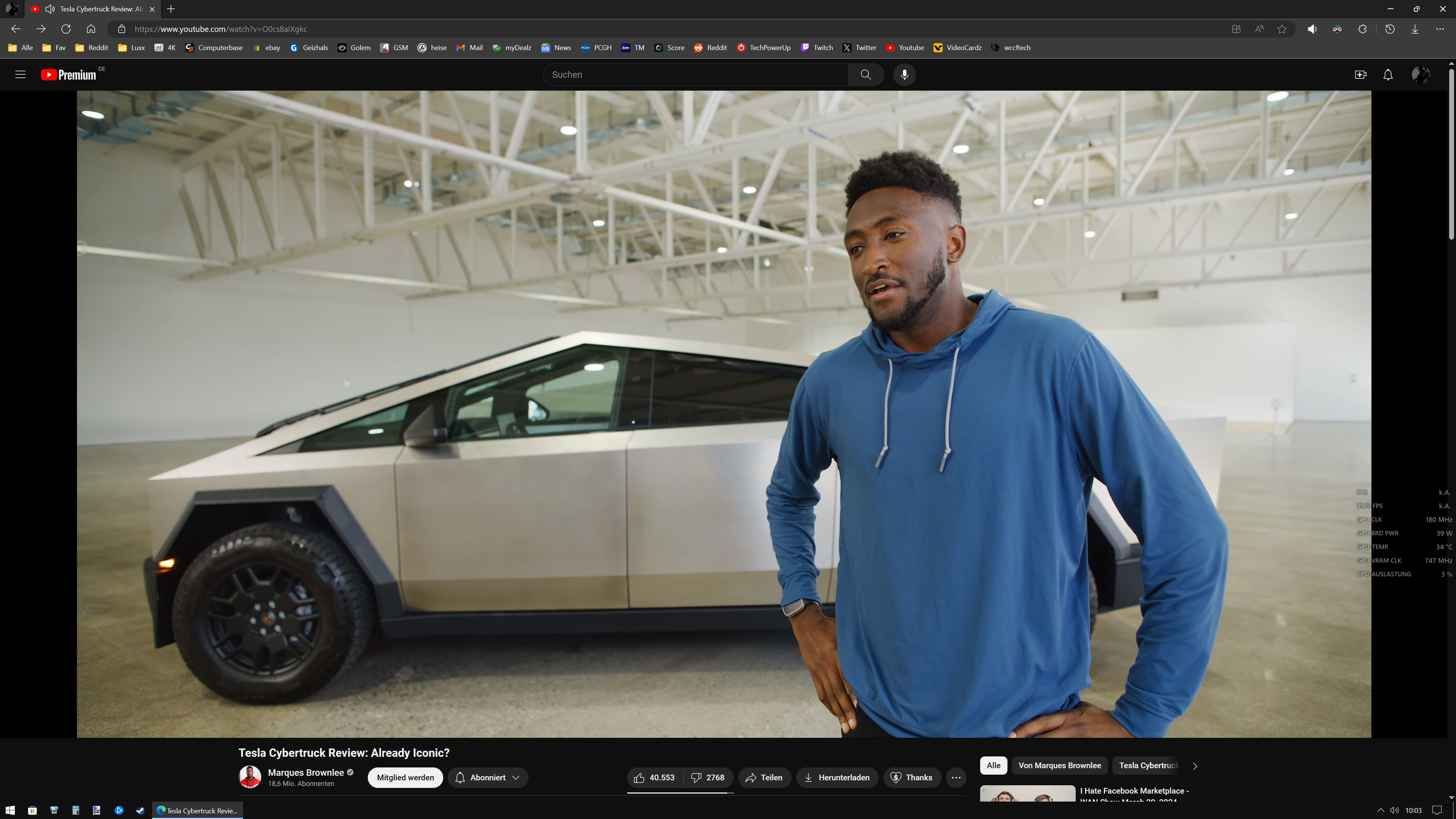 33-42w sobald Youtube mitläuft wie auf Bild 3 und da ists auch egal ob so ein einfaches Video ohne echte Bewegung oder das neue MKBHD Video in 4K.