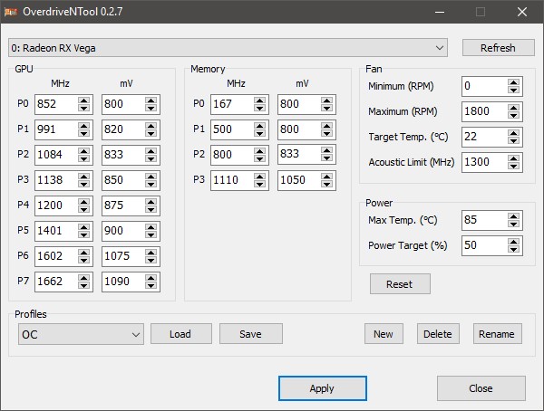 Sind die Settings in beiden Benches für einige Zeit stabil und werden nicht durch das Erreichen von irgendwelchen Schwellwerten zurückgepfiffen, erachte ich die eingestellten Werte bis auf Weiteres als "stabil", speichere das Profil zwischen, und tüftle weiter.