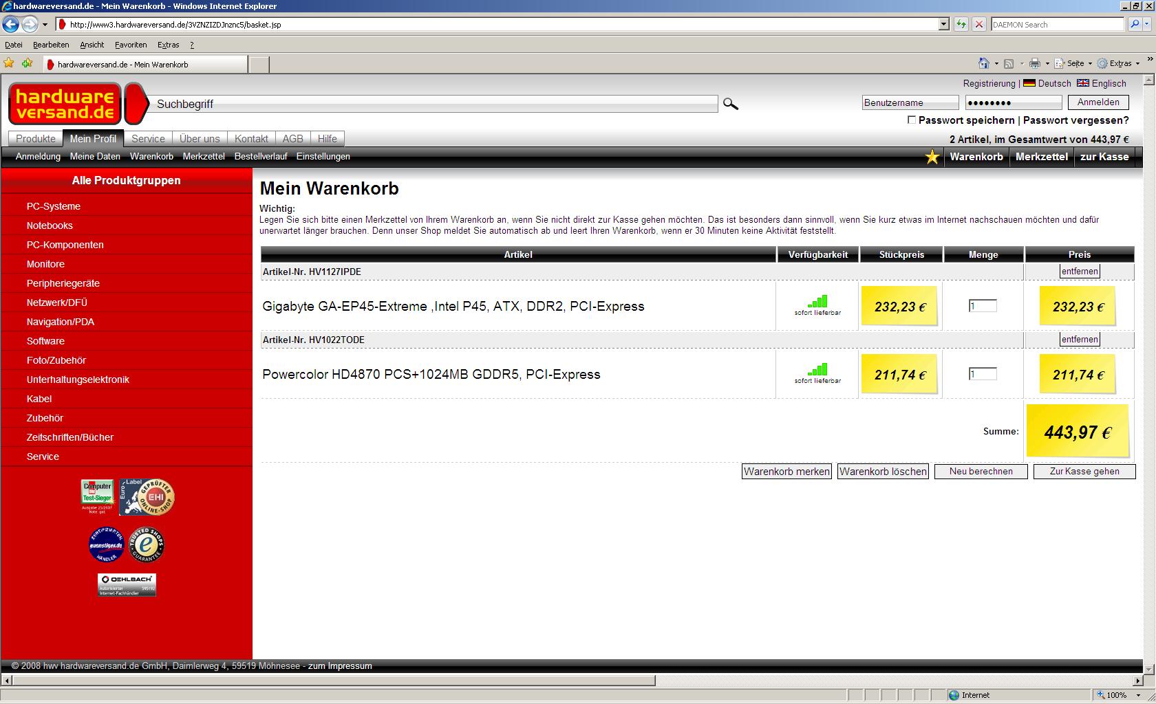 aaallllsooo...ich habe gerade mal bei boards direkt verglichen. ich denke ich werde das extreme nehmen.meine begründung ist eigentlich recht einfach: es hat 10 USB steckplätze. denn ich brauchte bei striker schon 5. als nächtes habe ich mal die preise verglichen. ich habe mal zwei bilder mit hochgeladen. ich komme bei notebookversand insgesamt deutlich günstiger weg als bei hardwareversand mit den gleichen artikeln.
